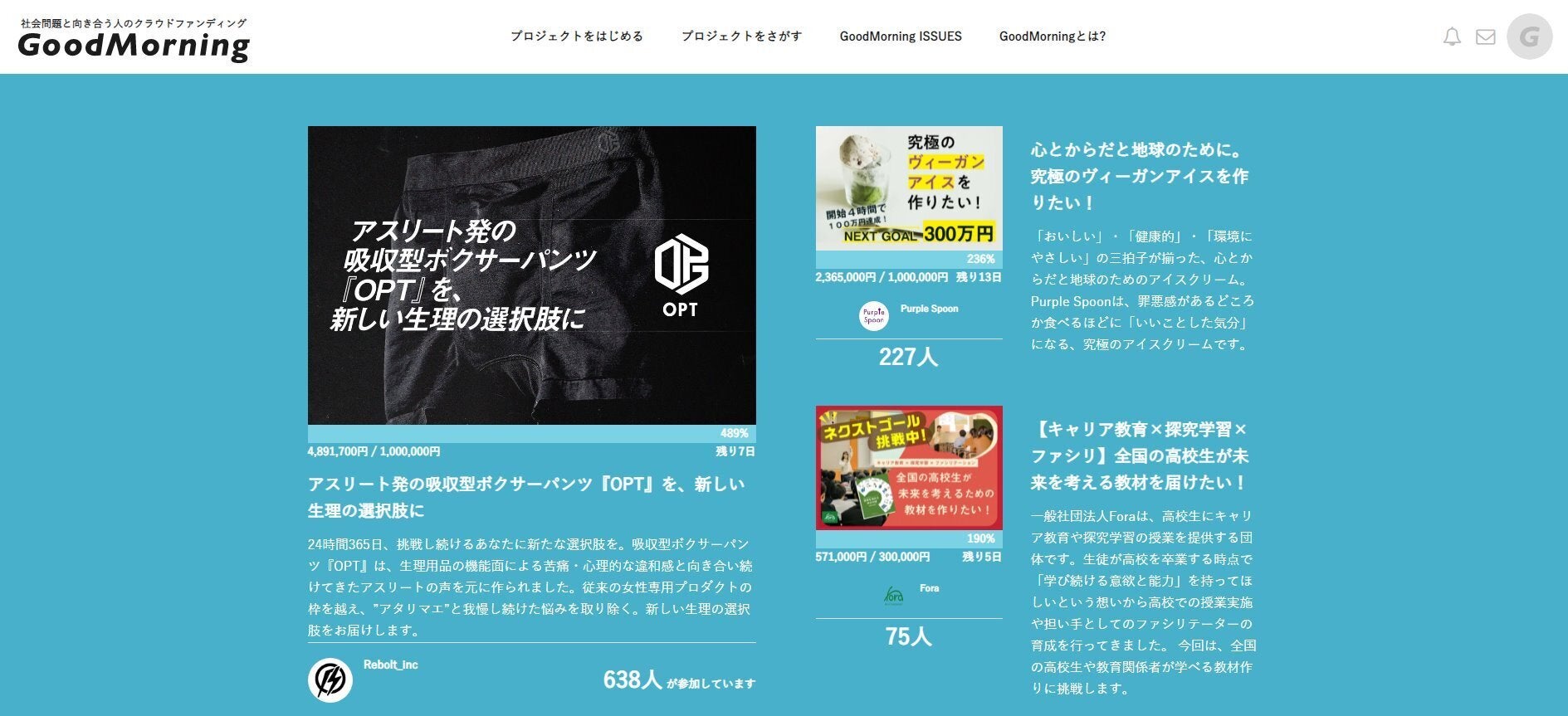 また、今回クラウドファンディングを実施したGood Morningさまの推薦プロジェクトに選んでいただき、サイトトップにも掲載いただくなど、多くの場面で背中を押していただくプロジェクトとなりました。