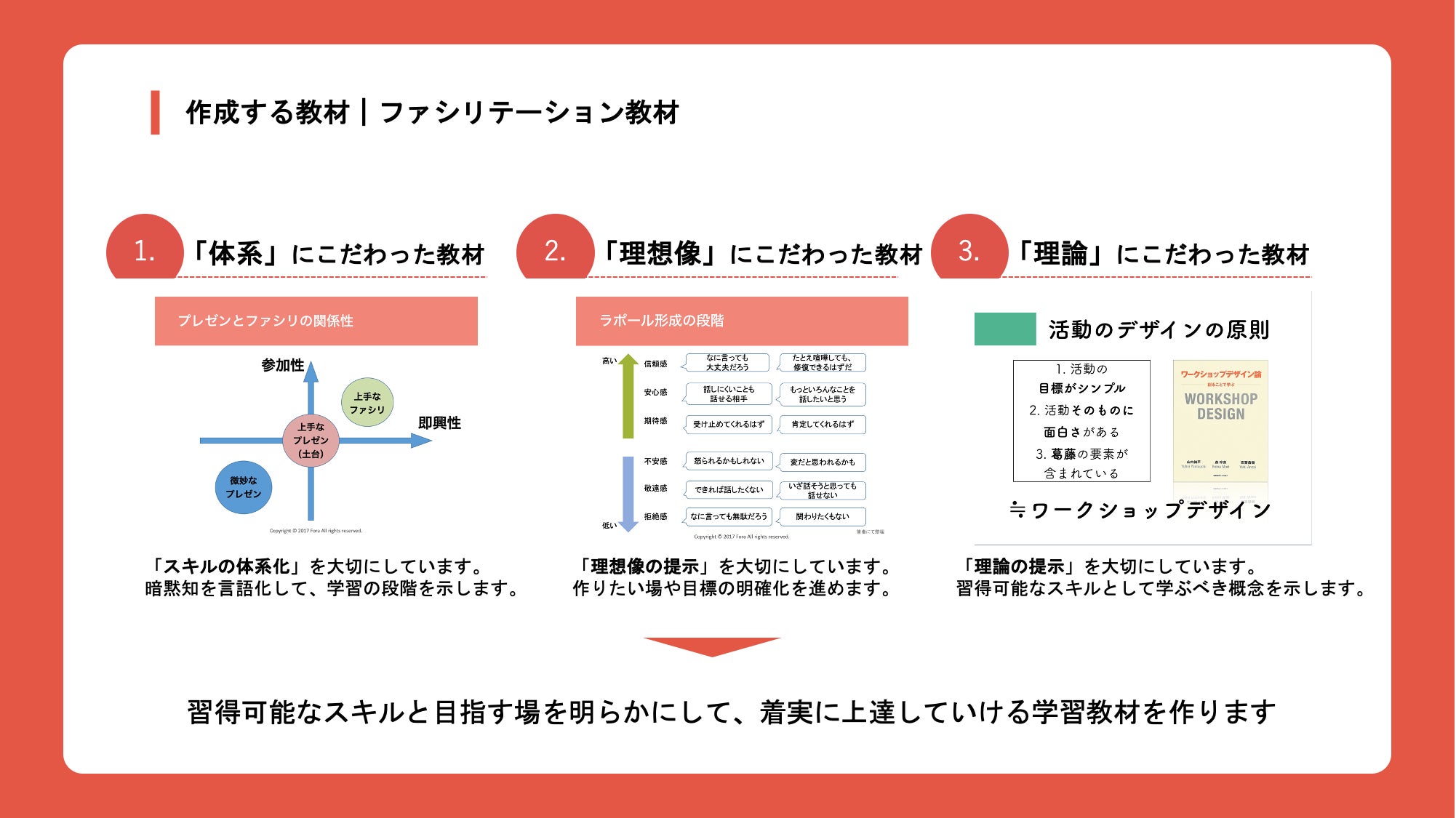 5年間の活動で培ってきた、教育現場に特化したファシリテーション教材を作成します。