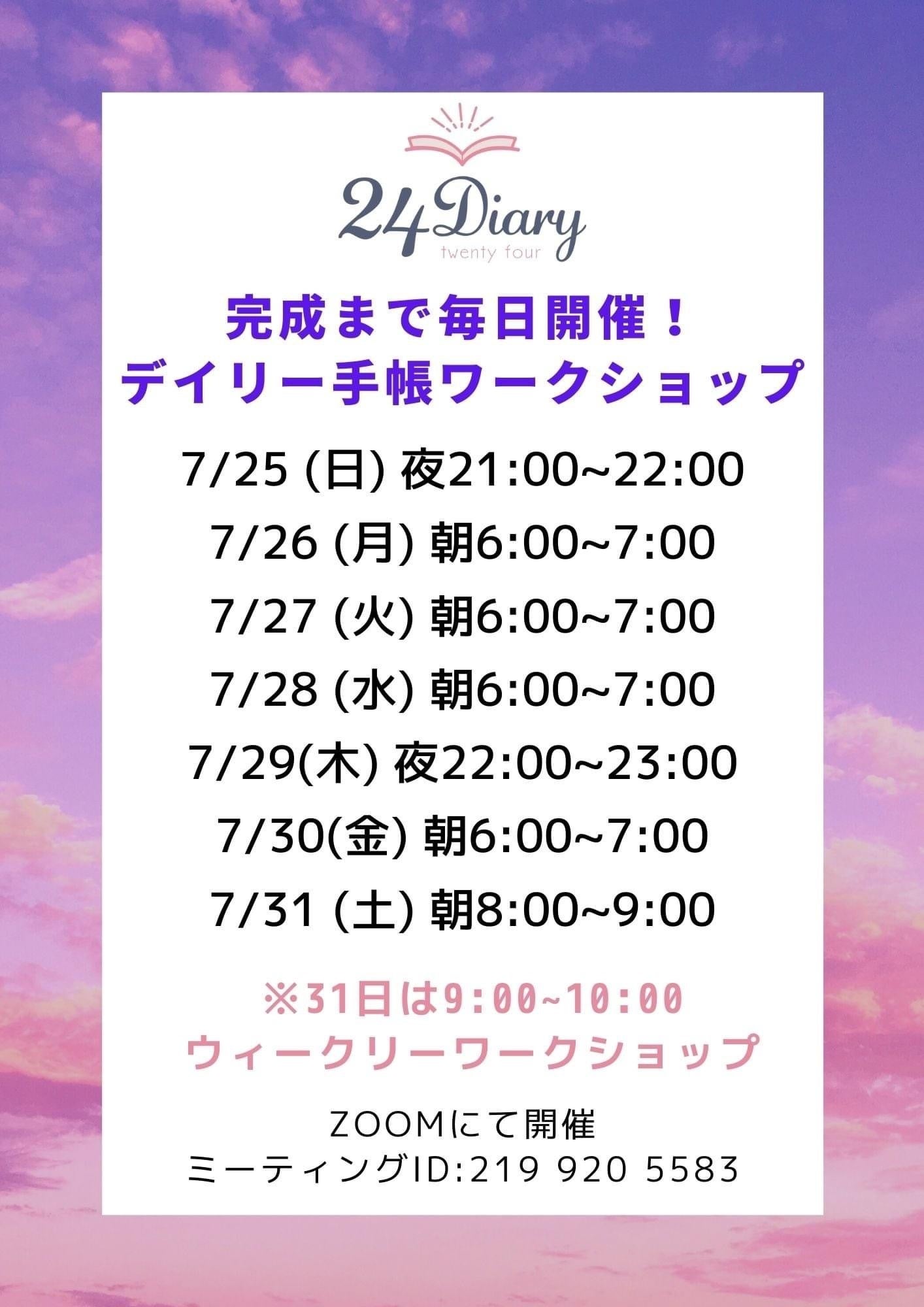 【24Diaryデイリーワーク 7/25~7/31開催スケジュール】