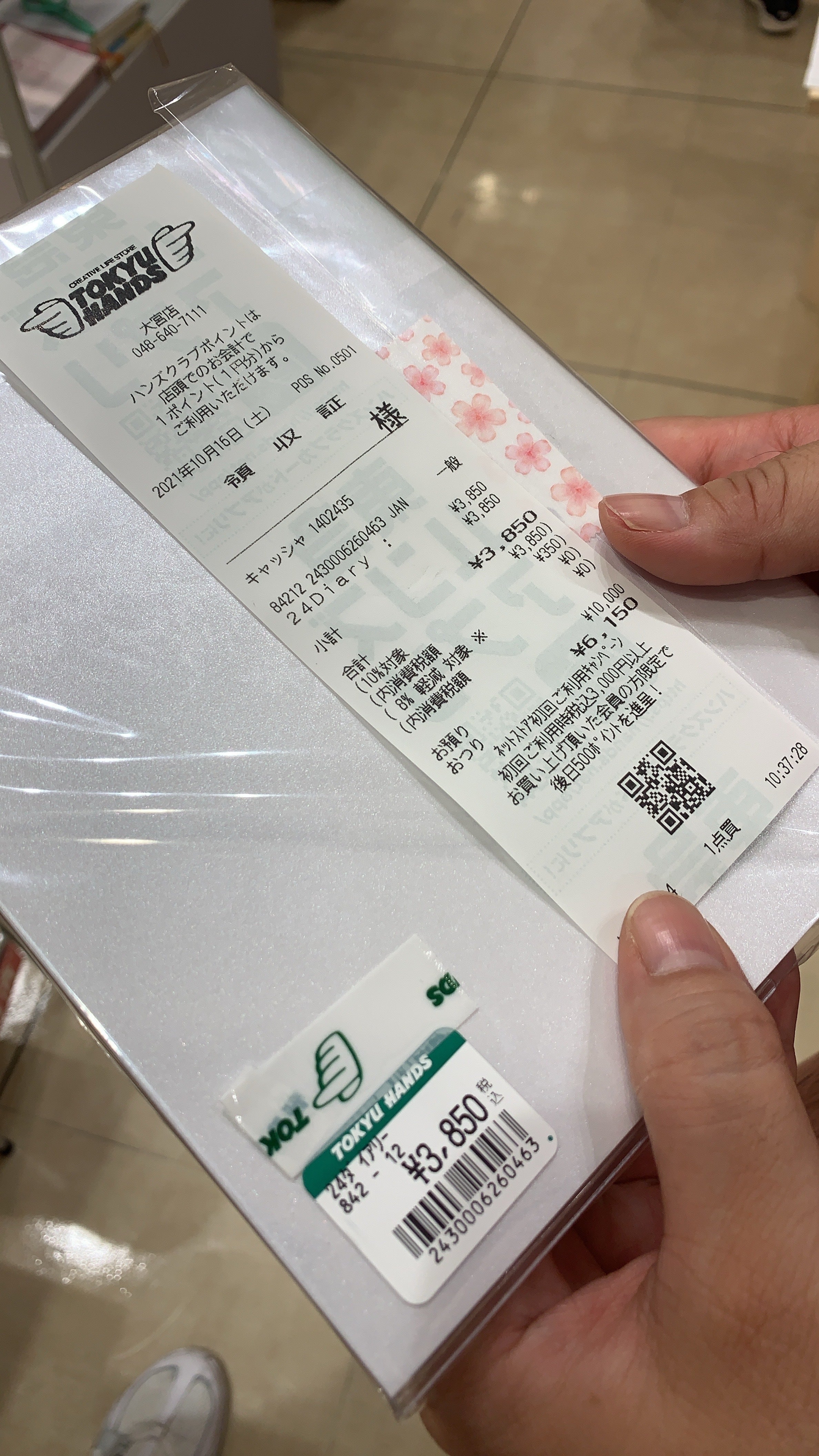背中にハンズのシールがあって、レジでピッとされて、レシートに24Diaryと印字されて(ノω`)嬉し泣きです。