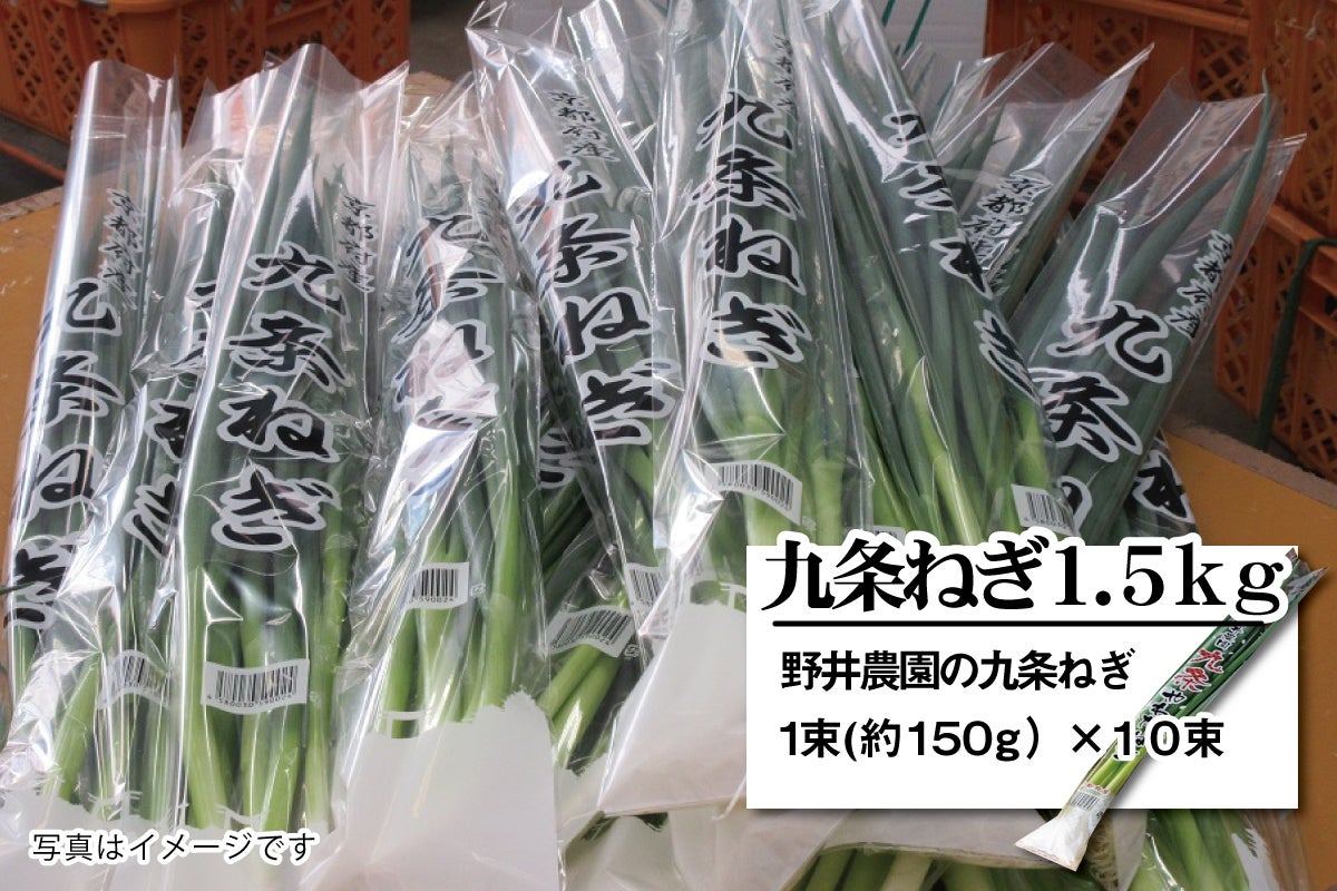 1束(約150g)の九条ねぎを10束(約1500g)となります。