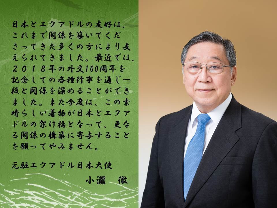 元駐エクアドル日本大使 小瀧徹様より応援メッセージをいただきました。