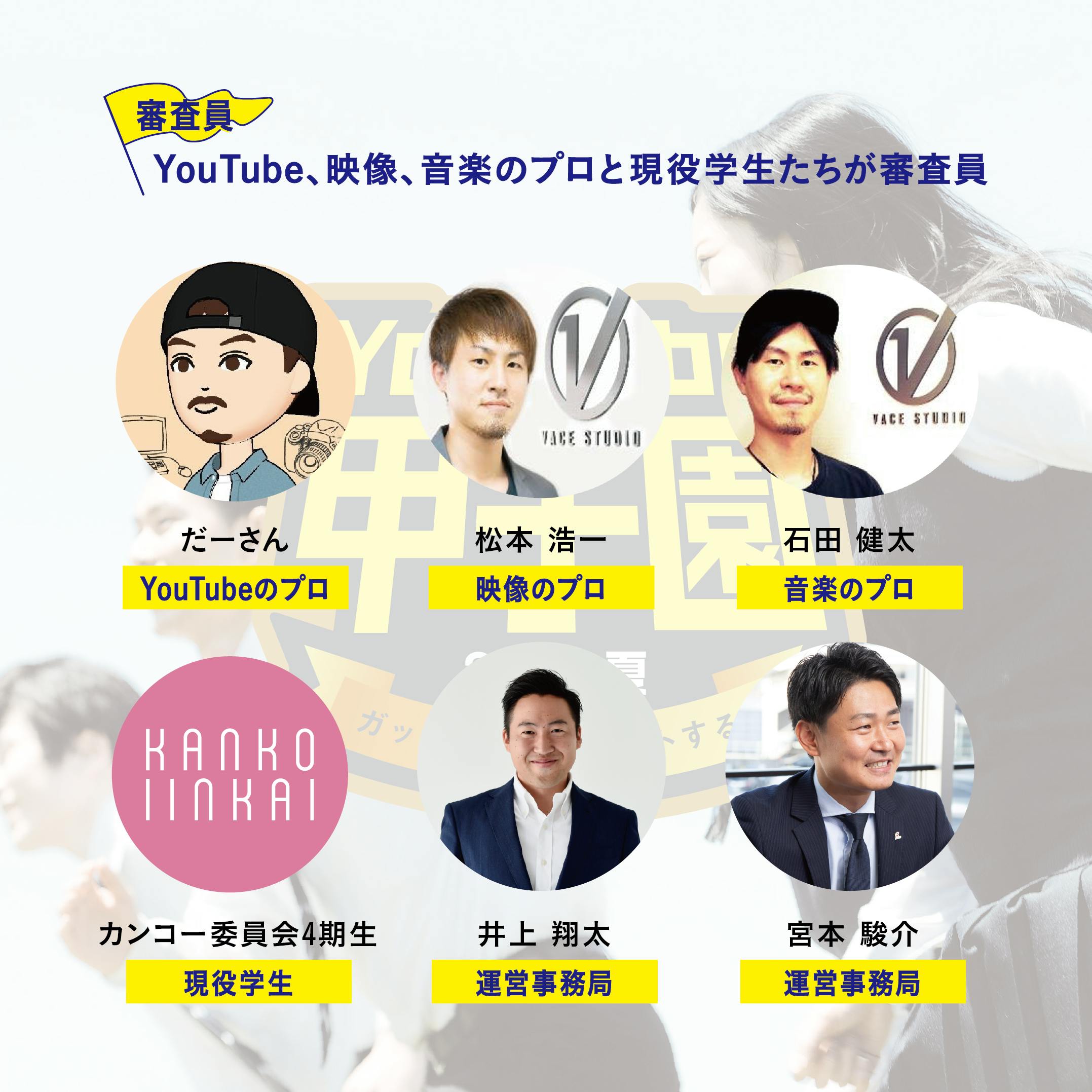 • 夏のYouTube甲子園は審査員もアツい!今回は参加していただいた学校、生徒により具体的で学びのあるフィードバックを行うためにYouTubeに関わる業界の第一線で活躍するプロの方に参加をいただきます。〇だーさん(YouTubeにプロ)第1回目から審査員を務めていただいているだーさんが今回も参加してくれます。テレビ、アプリ開発等のエンタメ業界を渡り歩き、数々のYouTubeチャンネルをディレクション。YouTubeで知らないことはありません。〇松本浩一氏(映像のプロ)専門学校在学中に数多くの映像コンテストで大賞を受賞。2010年からメジャーアーティストのミュージックビデオを中心に映画やドラマ、テレビ番組まで幅広いクリエイティブに携わる。2019年に独立し、人気アニメ作品や、大手企業のプロデュースを手掛ける。〇石田健太氏(音楽のプロ)武道館などの大規模ライブを経験するなど、プロベーシストとして活動。2013年からプロデュース、ディレクション業に転身し、人気ゲームの楽曲制作に携わる。2020年に独立し、音楽出版社を設立。作曲家と音楽を必要とするクリエイターを結ぶライブラリーミュージックサービスを展開。〇カンコー委員会4期生『学生が学生自身で作るライフスタイル』 presented by カンコー学生服カンコー委員会は、商品開発からモデル、PR活動までを行う女子中高生メンバーで構成されています。第4期生は、個性豊かな制服大好き12人!「学生が学生自身で作るライフスタイル」をテーマに様々な活動を行います。メンバーの詳細はこちらhttps://kanko-gakuseifuku.co.jp/shoplist/harajyuku/iinkai もっと見る