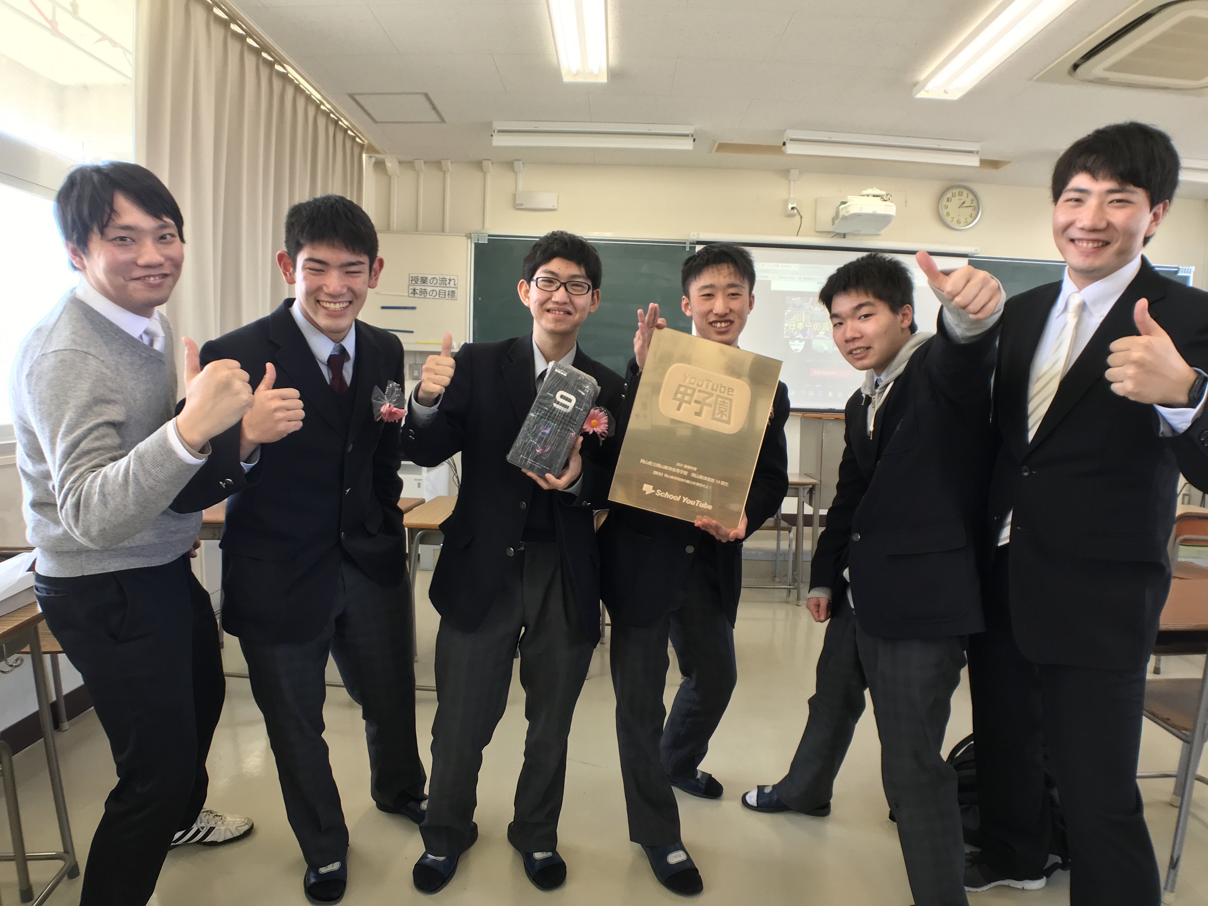 賞を受賞した学校には直接訪問してYouTube甲子園オリジナルの盾をお渡します。