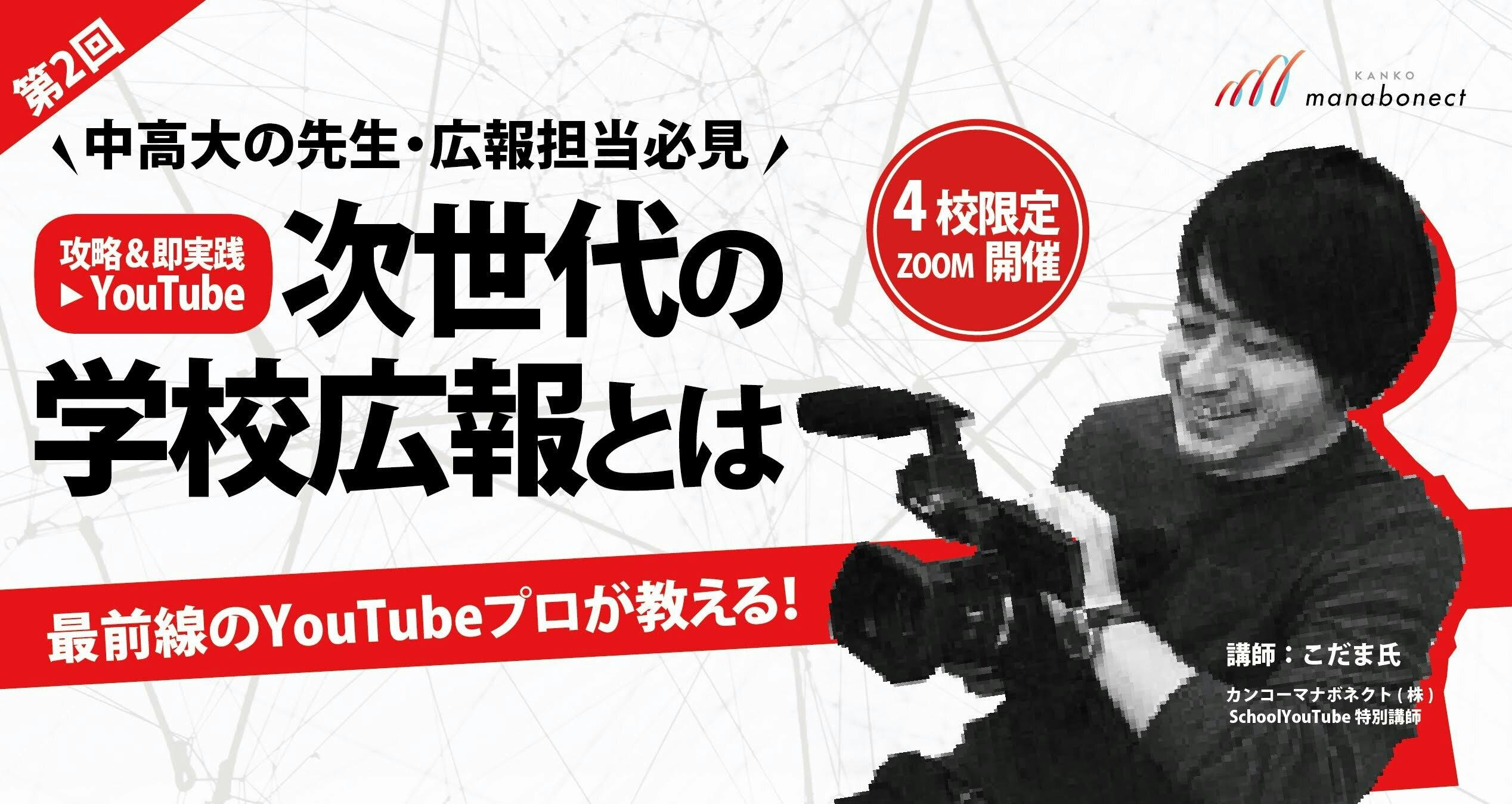 これからの学校広報にも動画やSNSの活用は必要になってきています。実際にコロナの影響から多くの学校がHPに動画をアップし、学校公式YouTubeチャンネルを作成しています。ただ、大多数の学校は動画を載せるだけで終わってしまい、実質的な広報には繋がっておりません。そこで今回は、なぜYouTubeなのか?をはじめ、学校現場でYouTubeを活用していく際のポイント、また広報だけに限らず生徒の学びにYouTubeを活用することが社会で活躍できる生徒の育成に繋がることをお伝え致しています。明日から使えるテクニックも盛りだくさんの為、ぜひ「学校広報」・「生徒の学び」にご活用頂ければと思います。