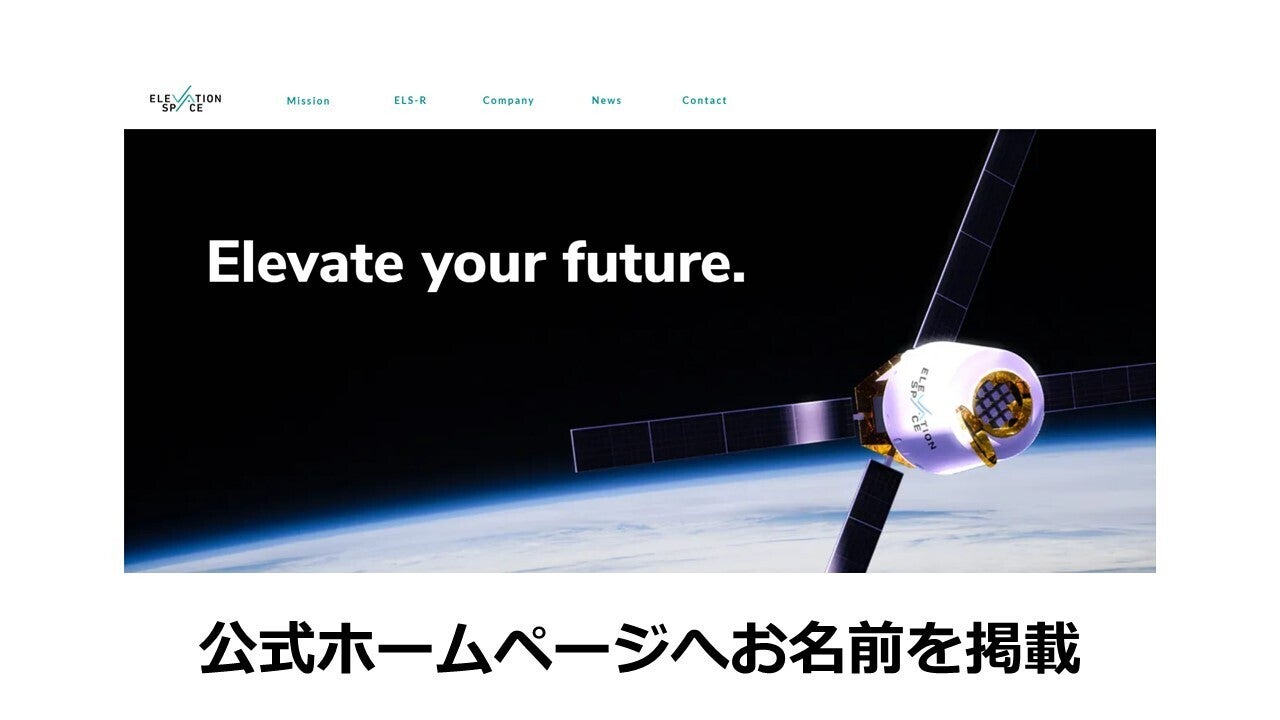 HPへの社名、ロゴ、メッセージ掲載とElevationSpaceとのイベント共催の権利が含まれています。