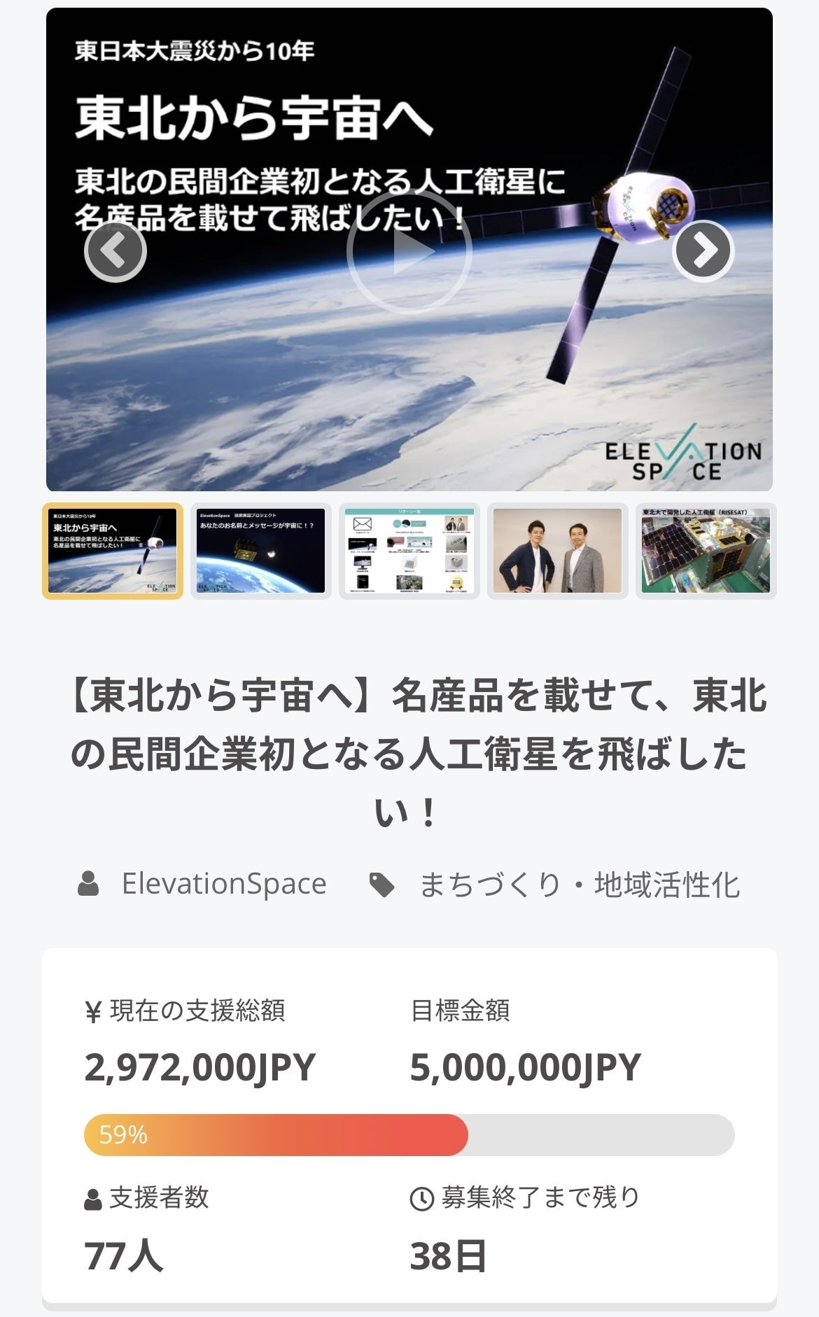 目標達成に向けて頑張って参りますので、今後もElevationSpaceのことを応援して頂けますと幸いです!