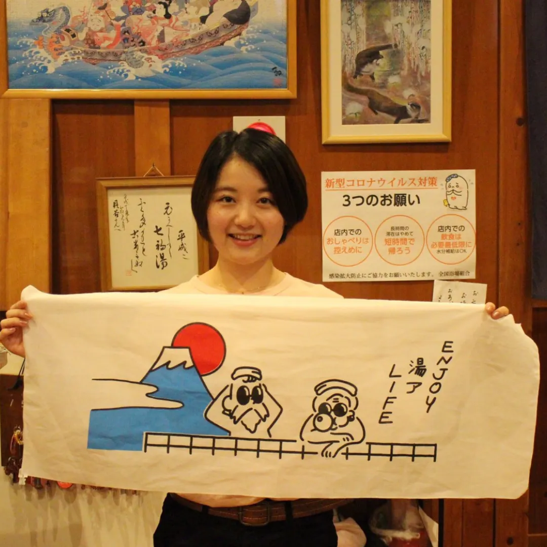 コンセプトの”YOUR”を”湯”にかけて、富士山と太陽をバックにPOPなカラーで仕上げました。これを持って銭湯へ出掛けたら、大人気間違いなし。