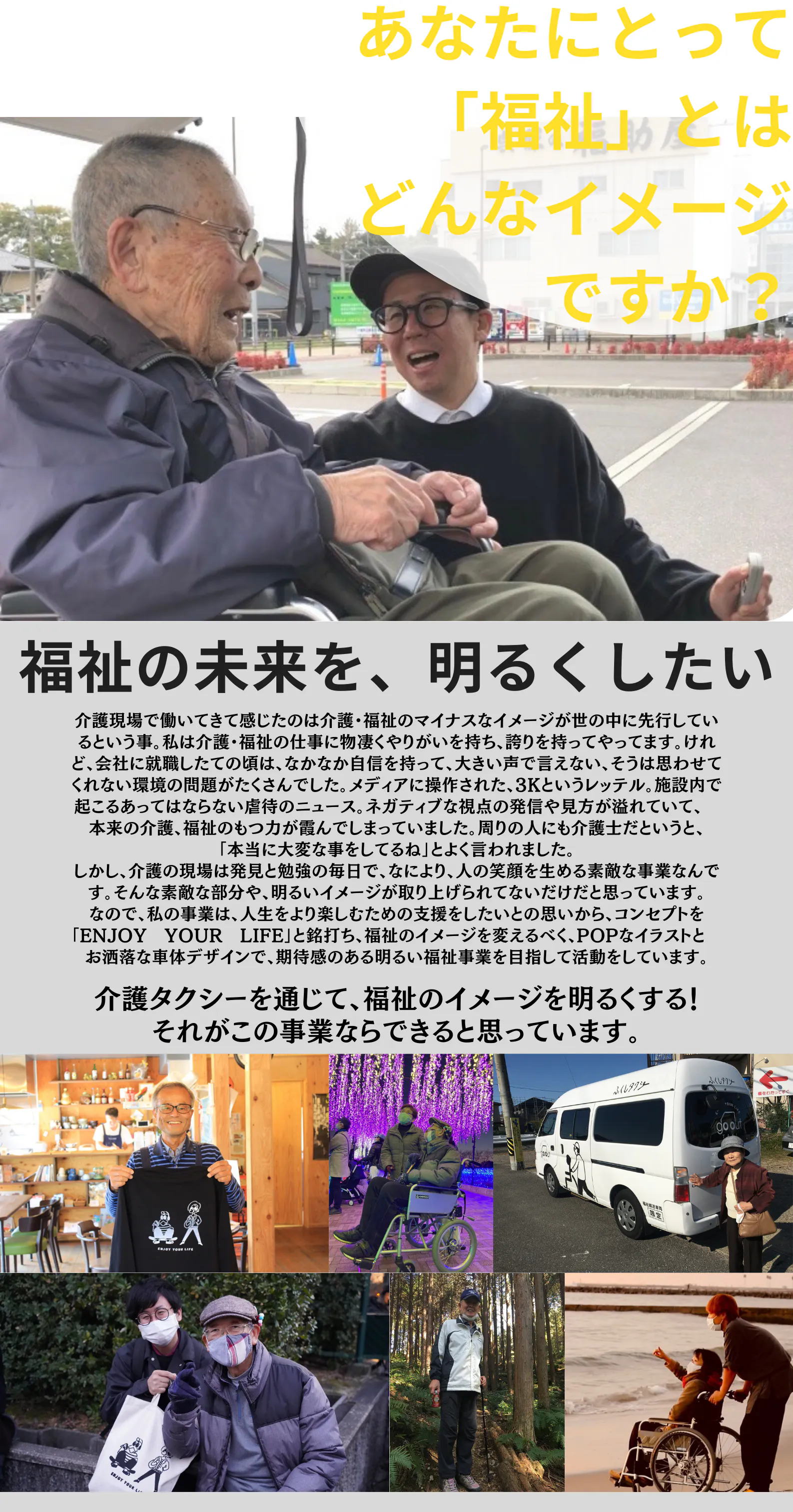介護タクシー事業を通じて、利用する人のやりたい事、行きたい所に行くのを支援して、