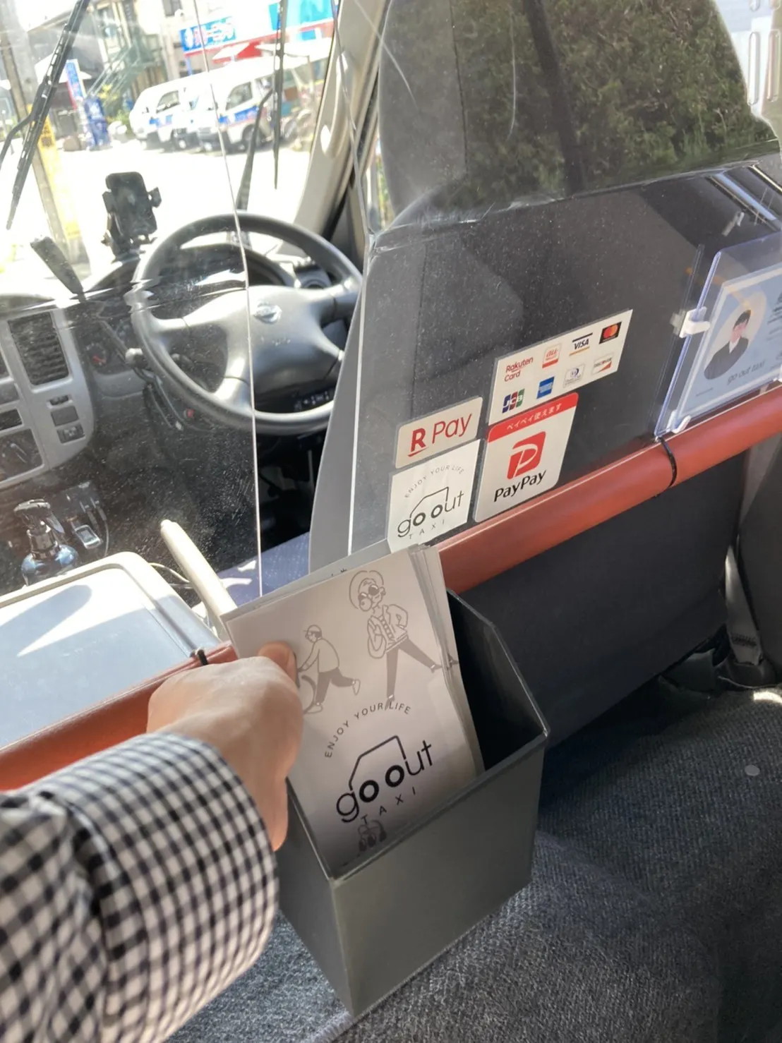 あなたのパンフレットをgo out taxiの車内に