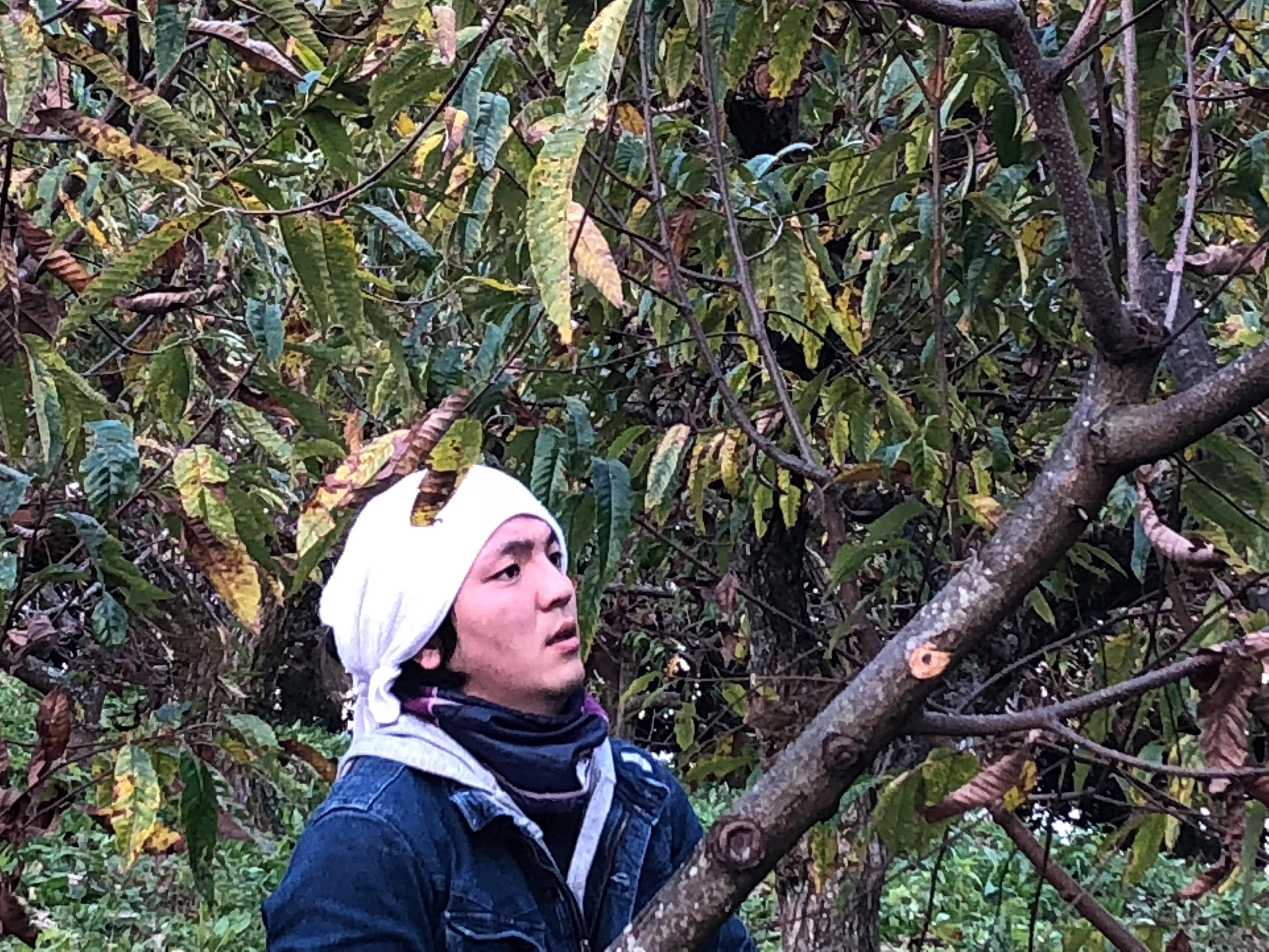 皆さんこんにちは。今回の起案者である福本琢也の息子の福本玲依です。僕は現在22歳ですが、高校卒業してすぐは松山で就職していました。しばらくして、父から「やってみんか?」と言われたのが栗農家になるきっかけです。最初は楽しそうだな、くらいの気持ちで始めました。ですが実際に農作業を始め、栗を育てることの難しさを知りました。全くの初心者だったので父の栗農家仲間である山田さん(オーナー様には動画でお馴染みのテツさんです!笑)に弟子入りをしたり、天気や土や水など色々なことを学び、考えながら栗の木を育てたり・・・。