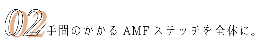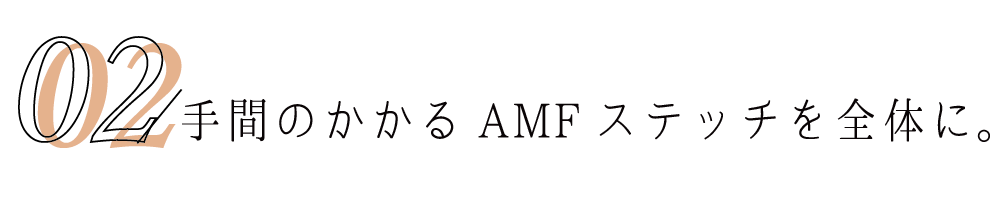 AMFステッチとは、「ピックステッチ」とも言われ、手縫い風のステッチのこと。