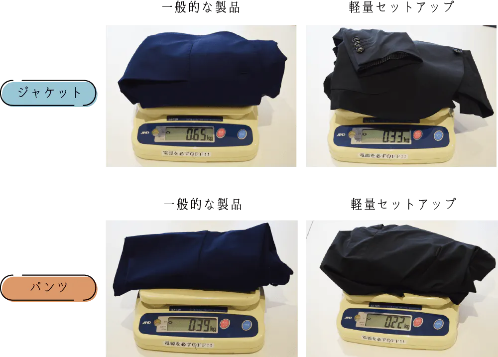 同じ型で作成した一般的な生地の製品と比較すると、なんと約半分の軽さ。
