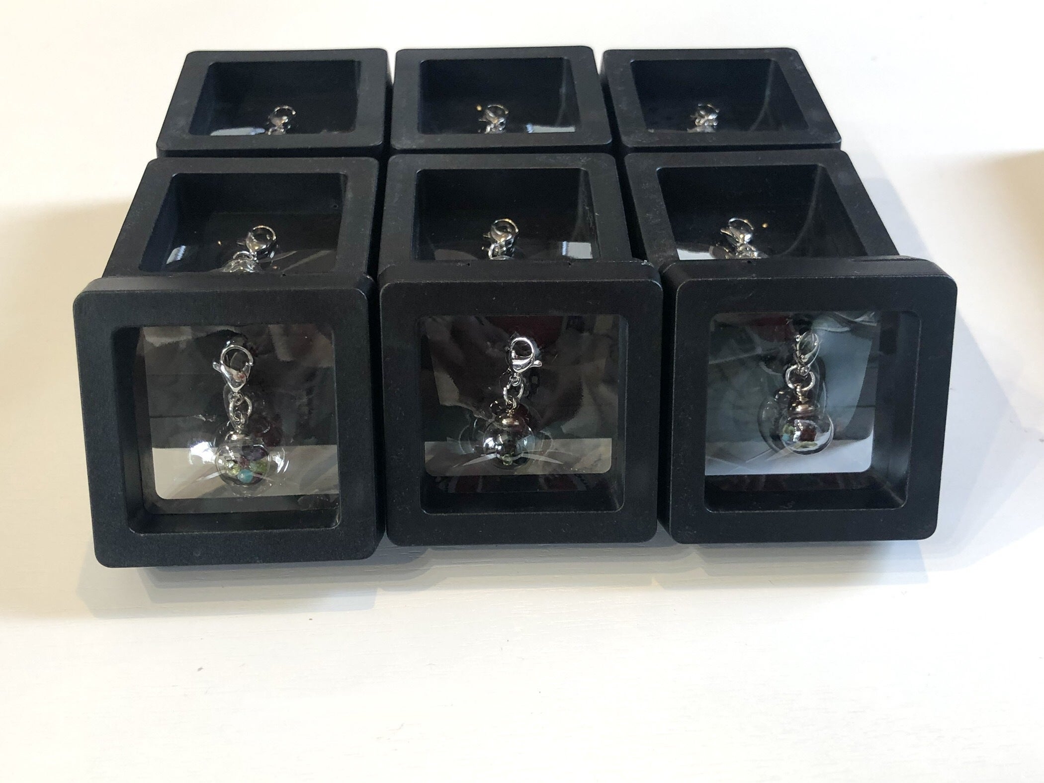 今回のガラスドームの入り口は小さく極小な宝石しか入りません、そんな高価な極小宝石を贅沢に5ct(1g)以上詰めました。ストラップ付