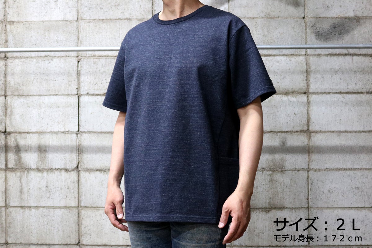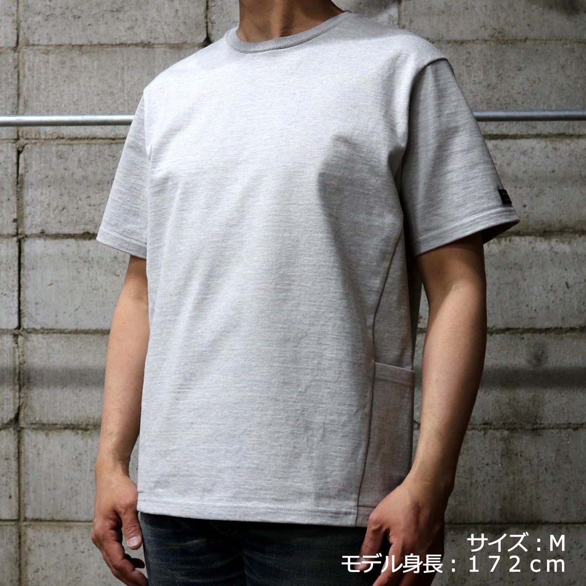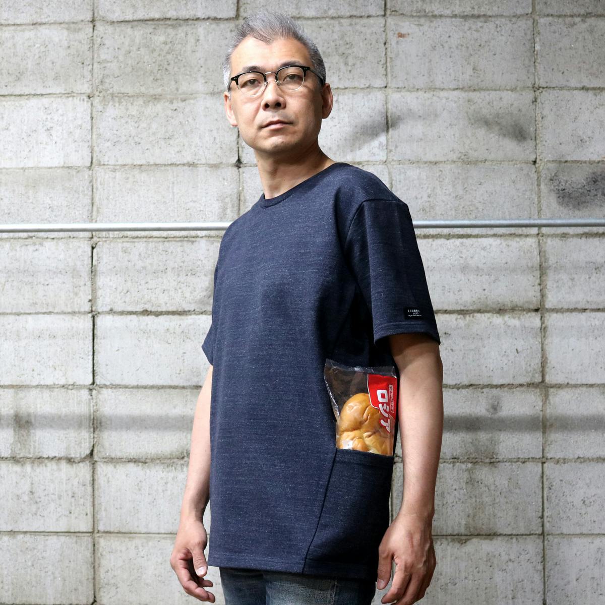 今回の『モンスターオンスTシャツ』には両脇に大きなポケットが付いています。このポケットにも13.5オンスの頑丈な生地を使用しているので、多少の重さのものを入れてもダラっと伸びたりしません。スマートフォンやカードケースはもちろん、スパナやドライバーなど少し重めのものでも問題なく収納できてとても便利です。