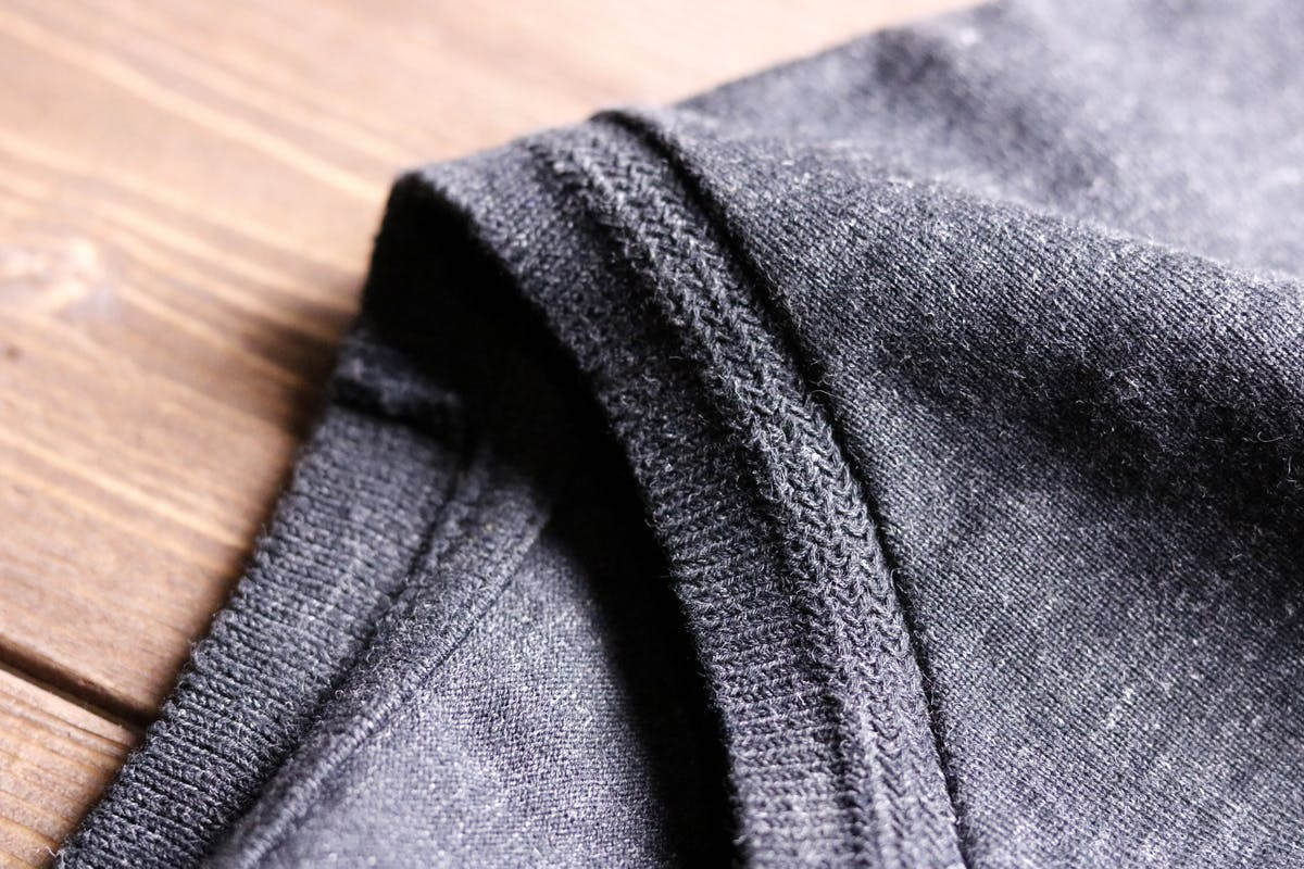 ひたすらに頑丈で着心地の良いTシャツを追求するのはデニムや皮製品のように経年による進化をTシャツでも楽しんでもらいたいからで、その人の生活スタイルが表れる汚れや色褪せていく様を進化であると思えるのは、モノが生活に馴染んだときの調和こそ美しいと考えているからです。