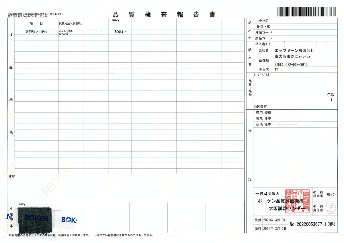 一般的にあまり知られていないこの「破裂強さ」という言葉。簡単に言うと布の破れにくさを表していて「衣料品の一般的な目安値は、薄地編物で300kPa以上、厚地編物で400kPa以上」(カケンテストセンターのサイトより引用)が最低限必要なスペックとされています。