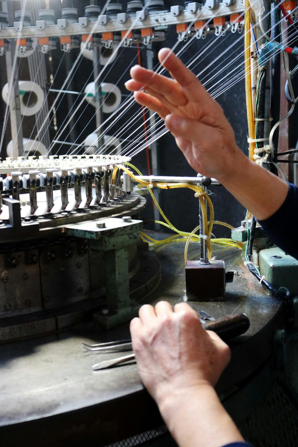 糸にも機械にも個性があるので相性をしっかりと見極めながら作業します。