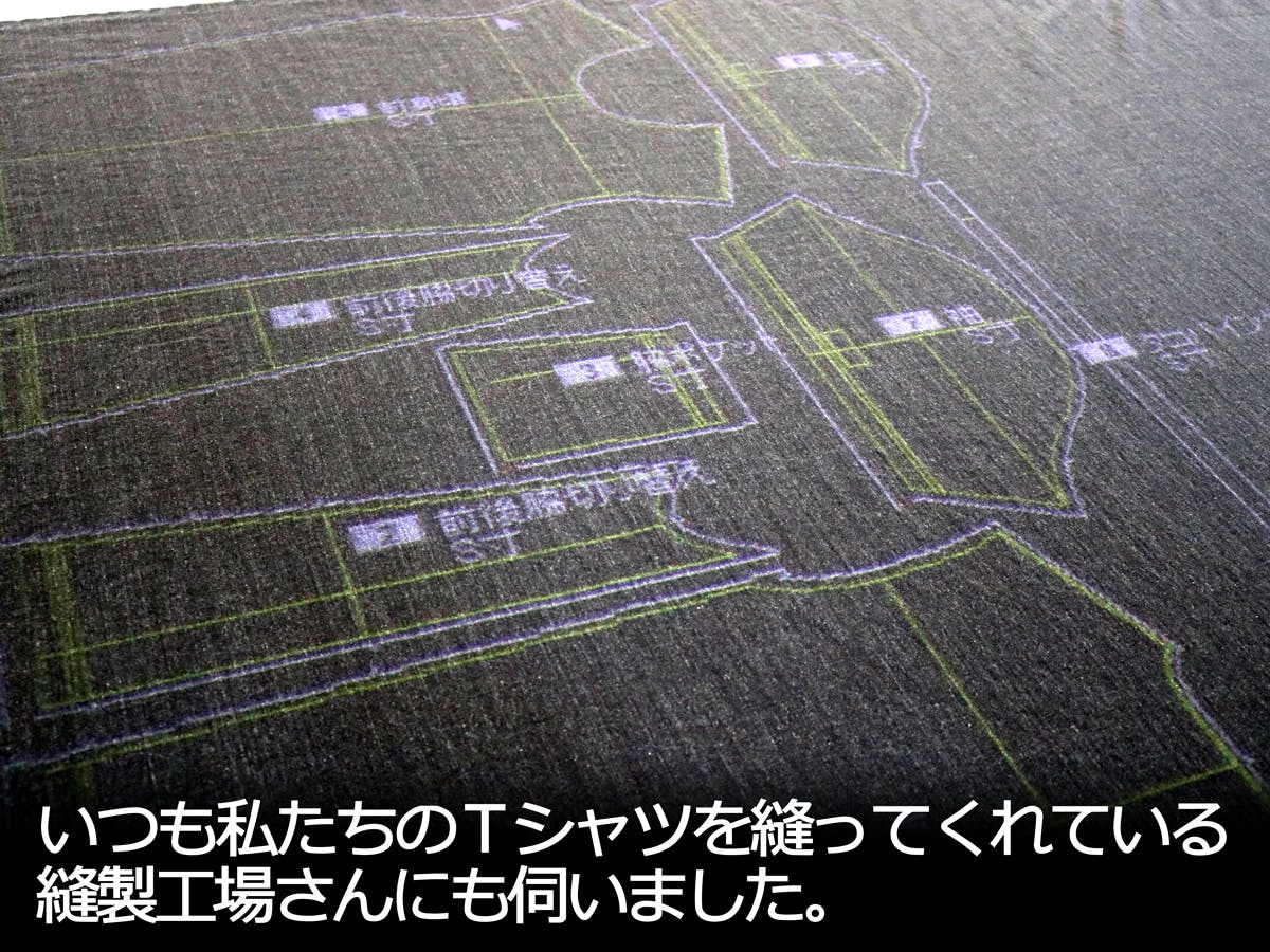 今回の生地がめちゃくちゃ重いのでTシャツが完成に近づくほど作業が過酷になる、ということをユーモアたっぷりに話してくれました。