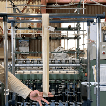 そうです(モノズキ専用ではありますが 笑)これ夏用なんです。ご自身で編まれた生地の製品を見ることはあまりないとのことで、編んだご本人も頑丈な仕上がりに驚いていました。