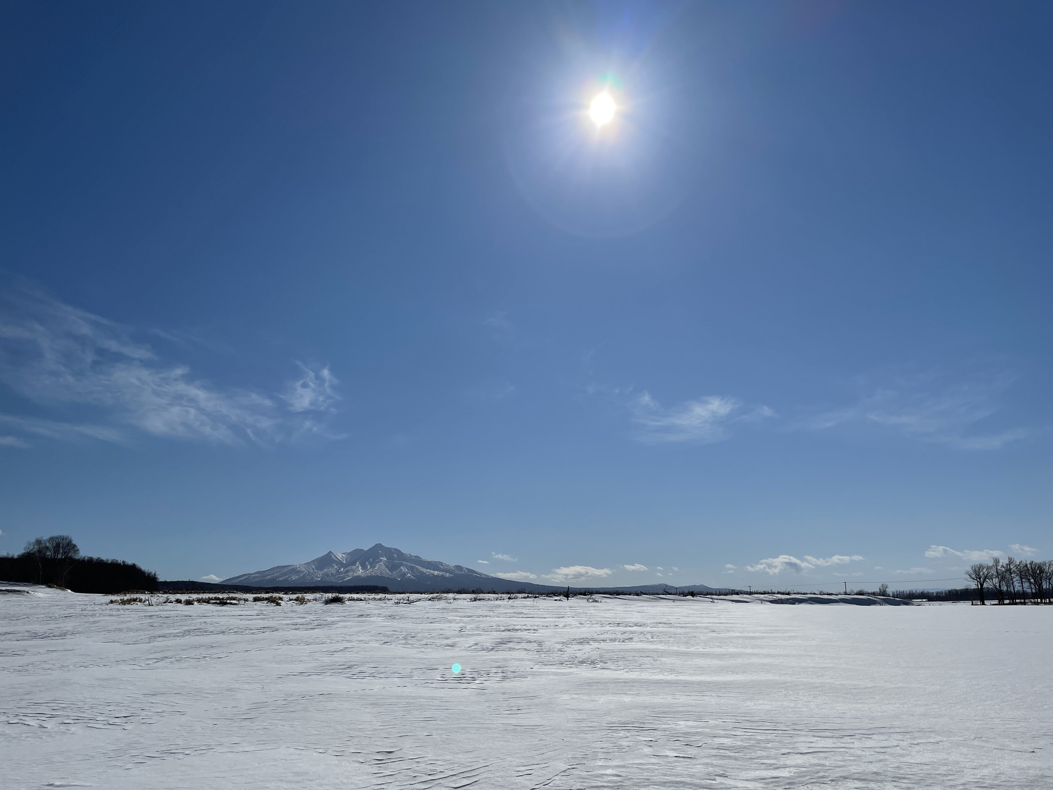 中央に見える山は知床半島の付け根にそびえる「斜里岳」