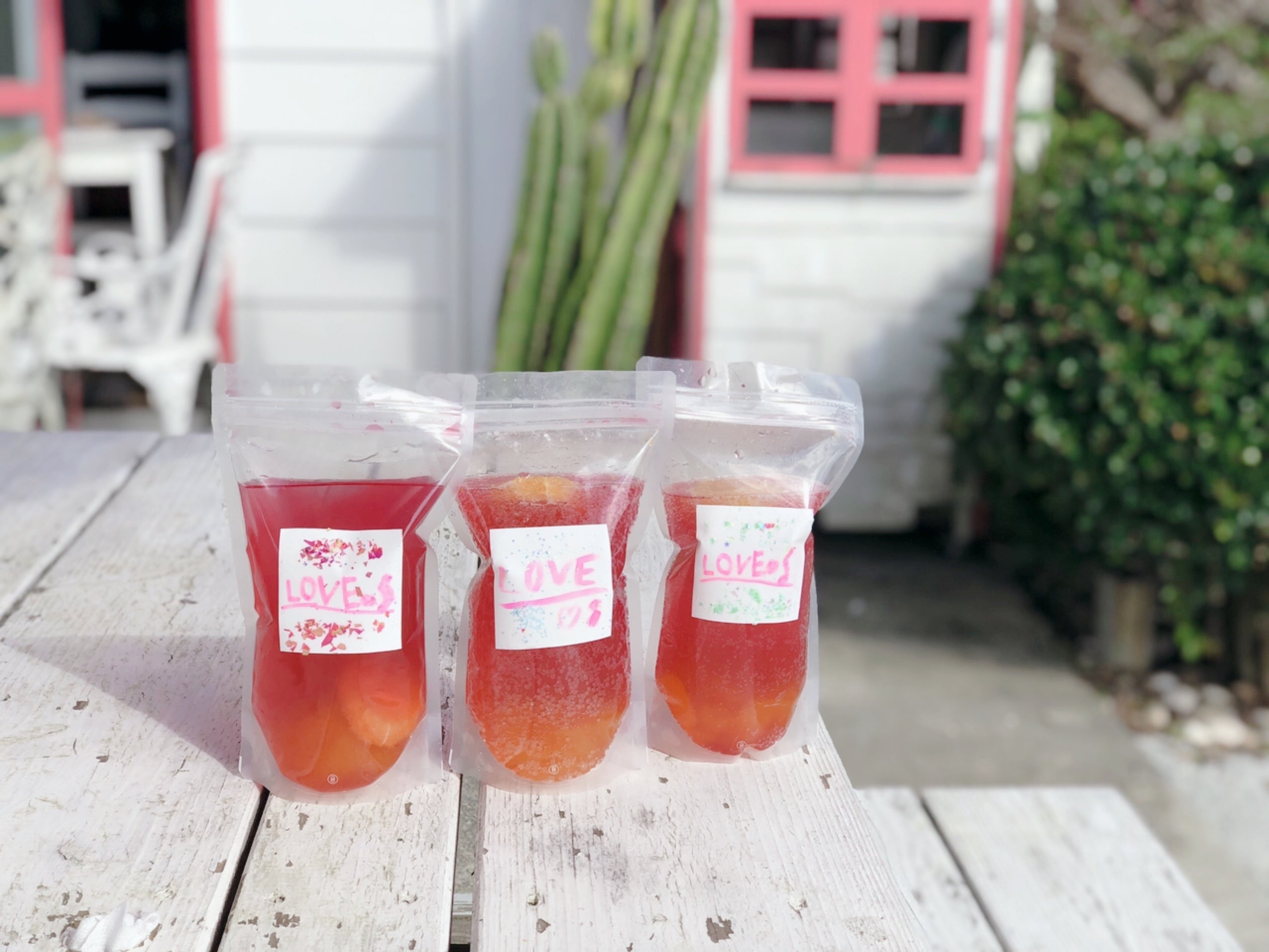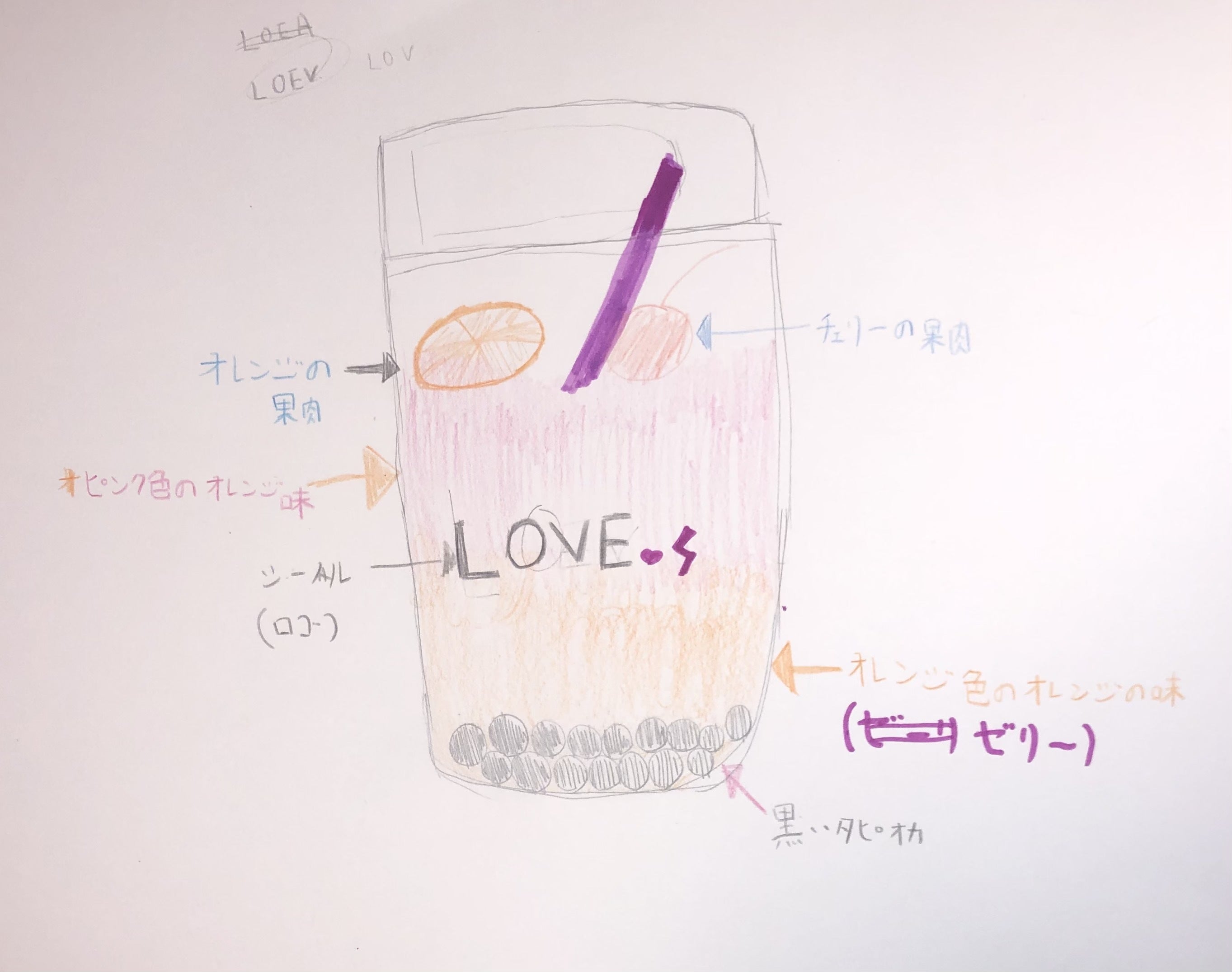 可愛らしくキラキラしたカラフルな色合いで、飲んだ人に元気を届けたい!子どもたちの愛情が伝わるような、その名も『LOVEジュース』。