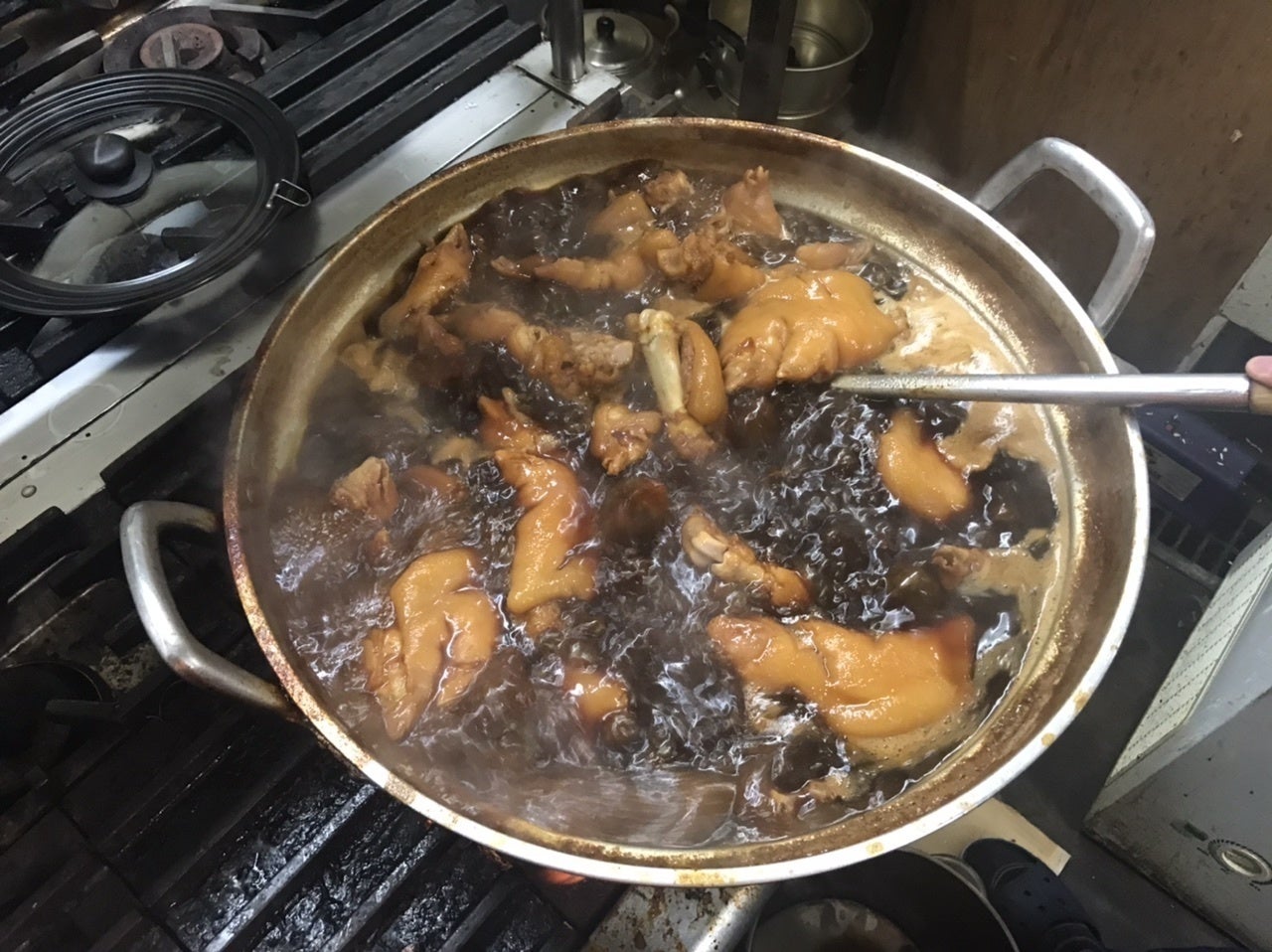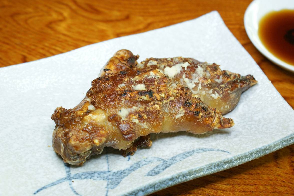 本来、豚足は味付けをほとんどしていない状態で焼いたものをポン酢で食べる商品ですが、居酒屋太鼓の豚足は親の代から受け継がれる25年間つぎ足してきた秘伝の煮込み汁でしっかり味を付け、それをこんがり焼いた一手間も二手間もかけた商品になります。