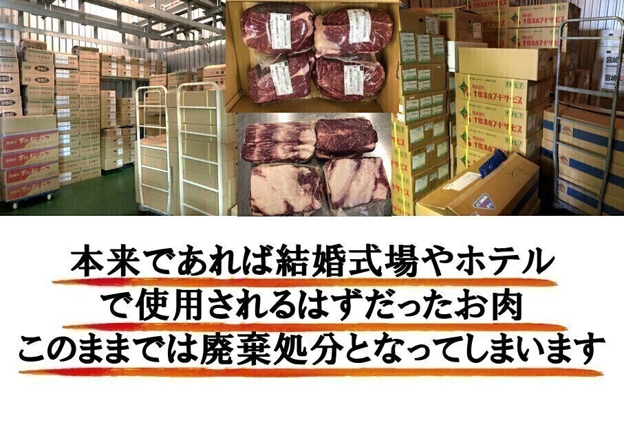 現在、コロナ禍により全国各地のお取引様で休業要請や蔓延防止措置による時短営業などが続く中、出荷予定だった商品のキャンセルが後を絶たない状況が続いております。その影響で国産牛の在庫は当然のことながら膨れあがり現在約30トンものお肉が倉庫に眠っている状態です。
