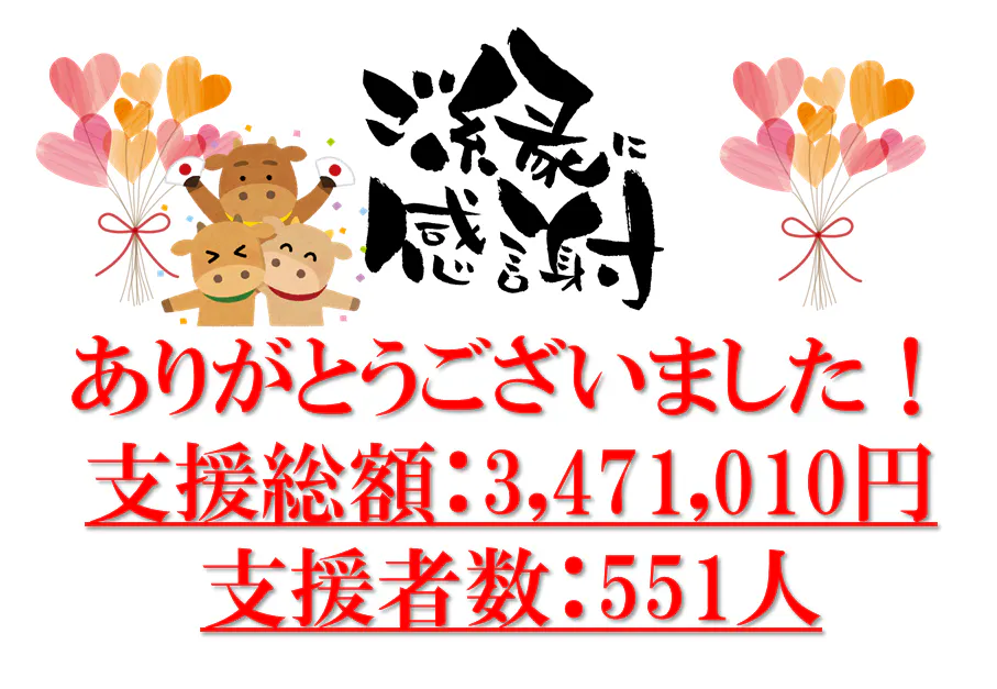 総支援額3,471,010円 総支援者数551名様