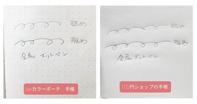 エバーペンシルは、ツルツルしている紙とは摩擦が起きないため、筆跡が出ません。紙によって、筆圧に応じて筆跡が濃かったり、薄かったりもします。