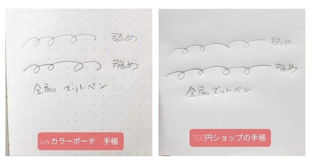 普通のボールペンに比べると、水に濡れても滲みませんので筆跡が長持ちです。文章を書くための筆記具としてはもちろん、メモやデッサンにもおすすめの1本です。