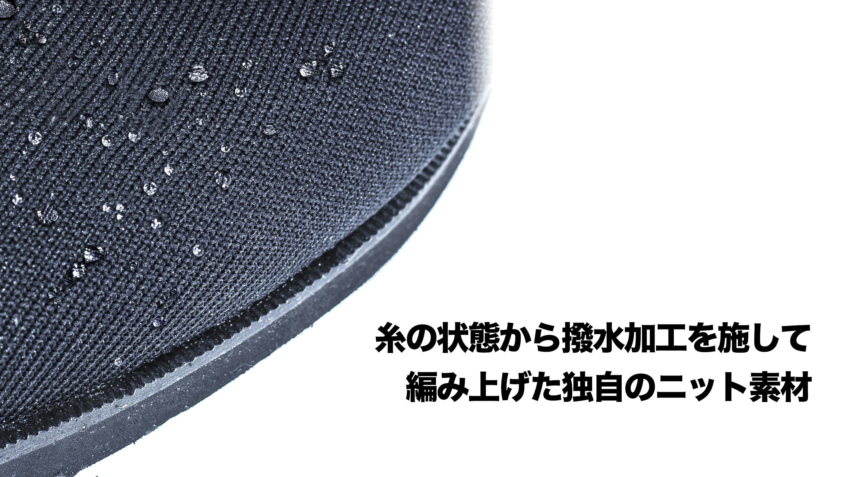 糸の状態から撥水加工を施して編み上げた独自のニット素材〈ACTHREAD TM(アクスレッド)〉を採用。