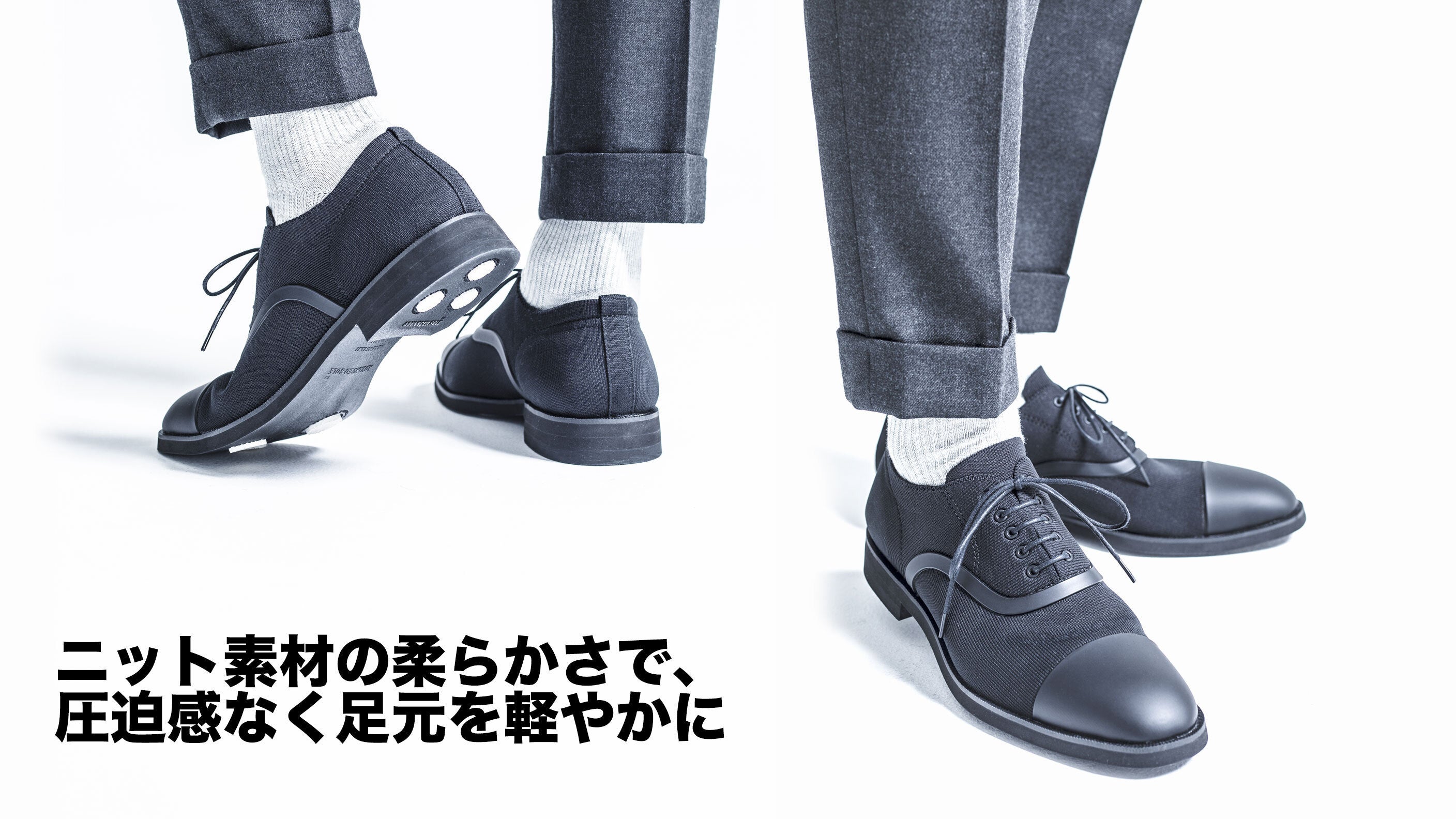 ニット構造の素材であるため、言わずもがな軽量性も抜群。一般的な革素材のビジネスシューズと比較すればその違いは明らか。外回りが多い日なら、特にこの差は無視できない問題。体への負担が全く違います。
