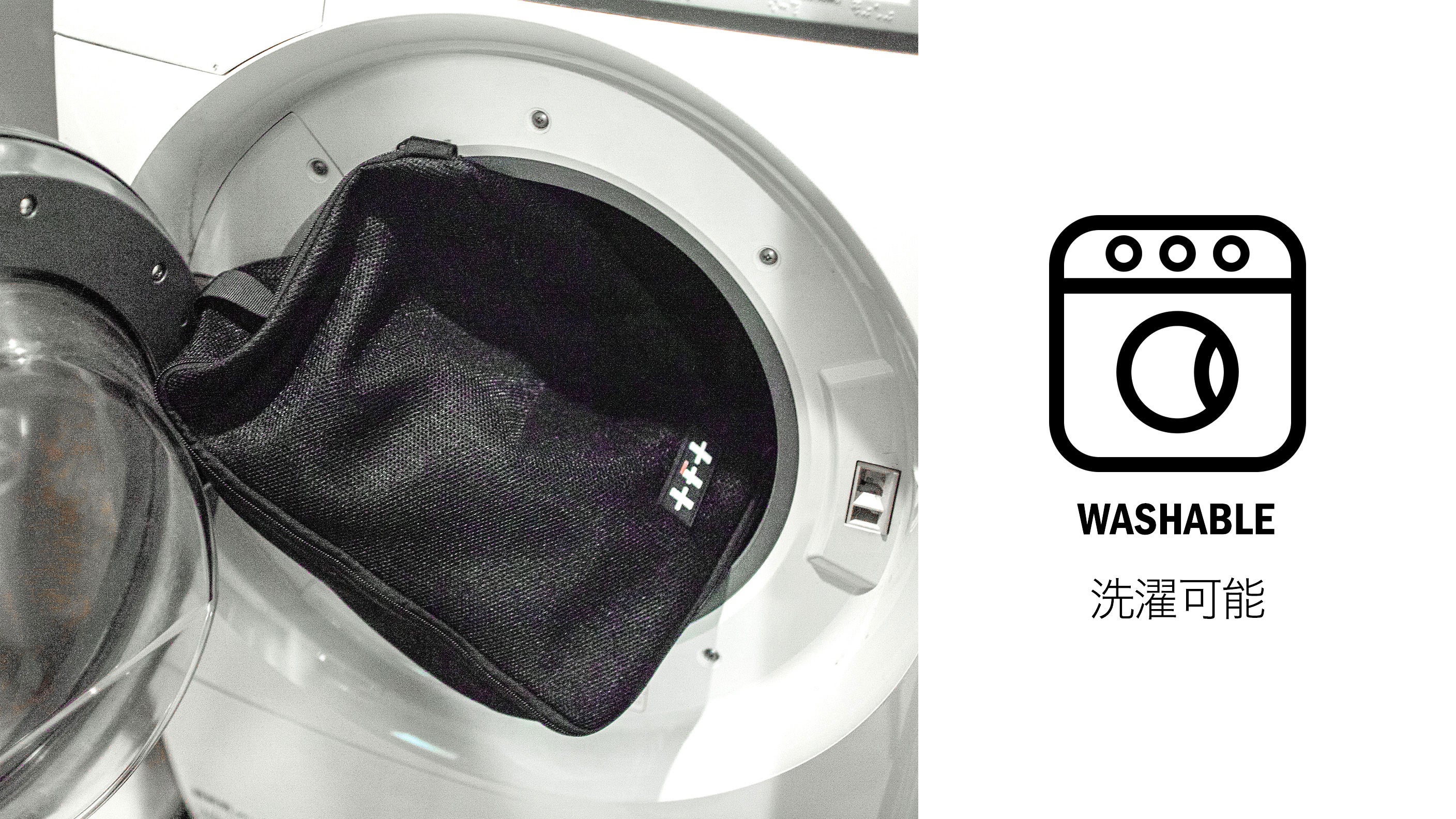 こちらはランドリーバッグとしてだけでなく、普段はシューズの収納や持ち運び用ケースとしても使用できるため、出張や旅行にも最適。「+F+(エフ)」のシューズであれば洗ってもすぐ乾くので、出張先での洗濯も可能です。