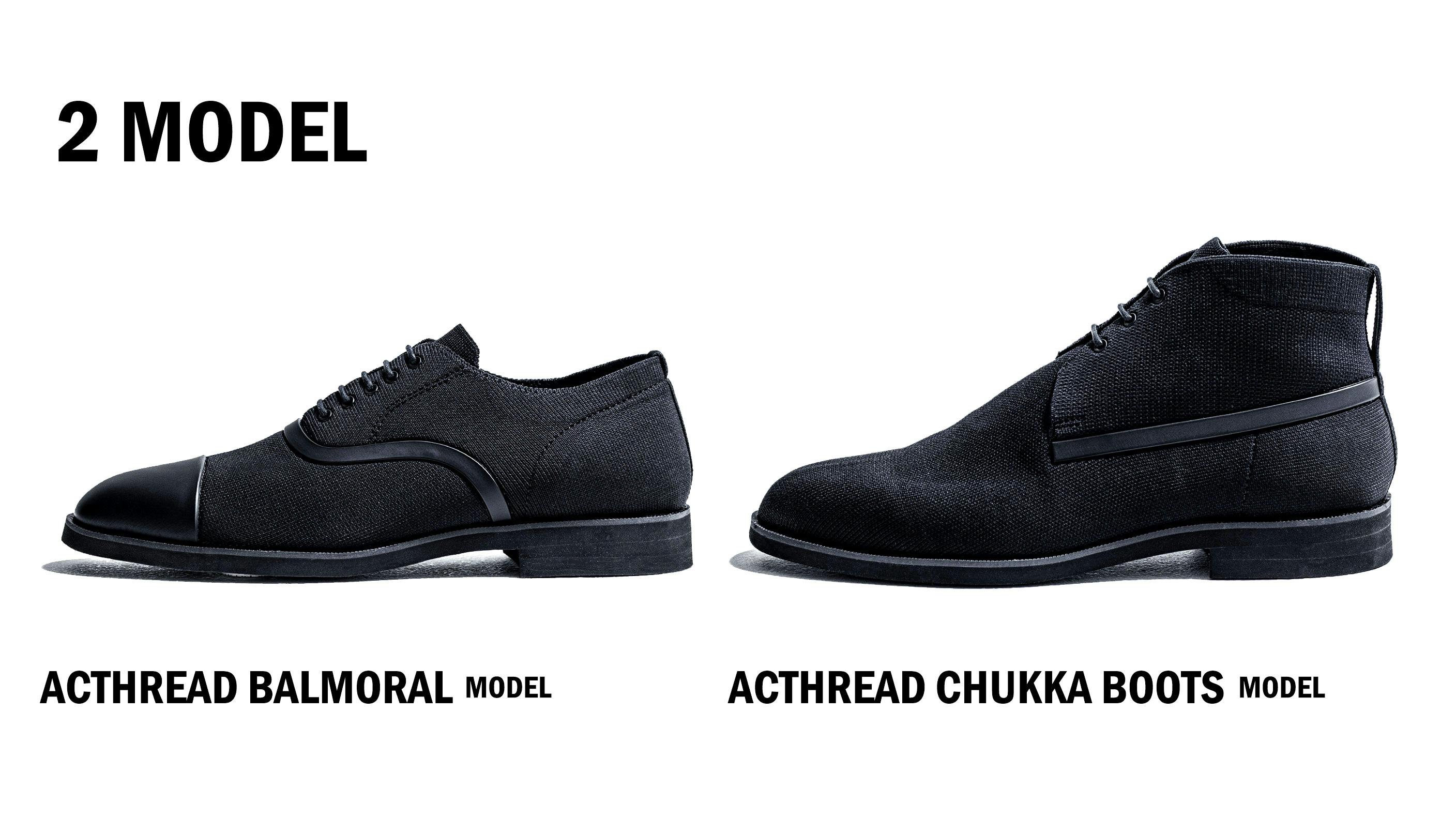 今回リリースするのは、内羽根タイプの「ACTHREAD BALMORAL(アクスレッドバルモラル)」と、チャッカタイプの「ACTHREAD CHUKKA BOOTS(アクスレッドチャッカブーツ)」の2型。