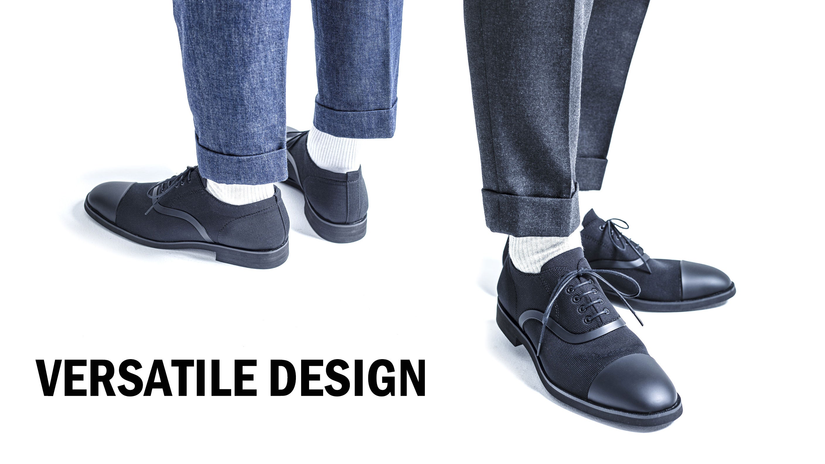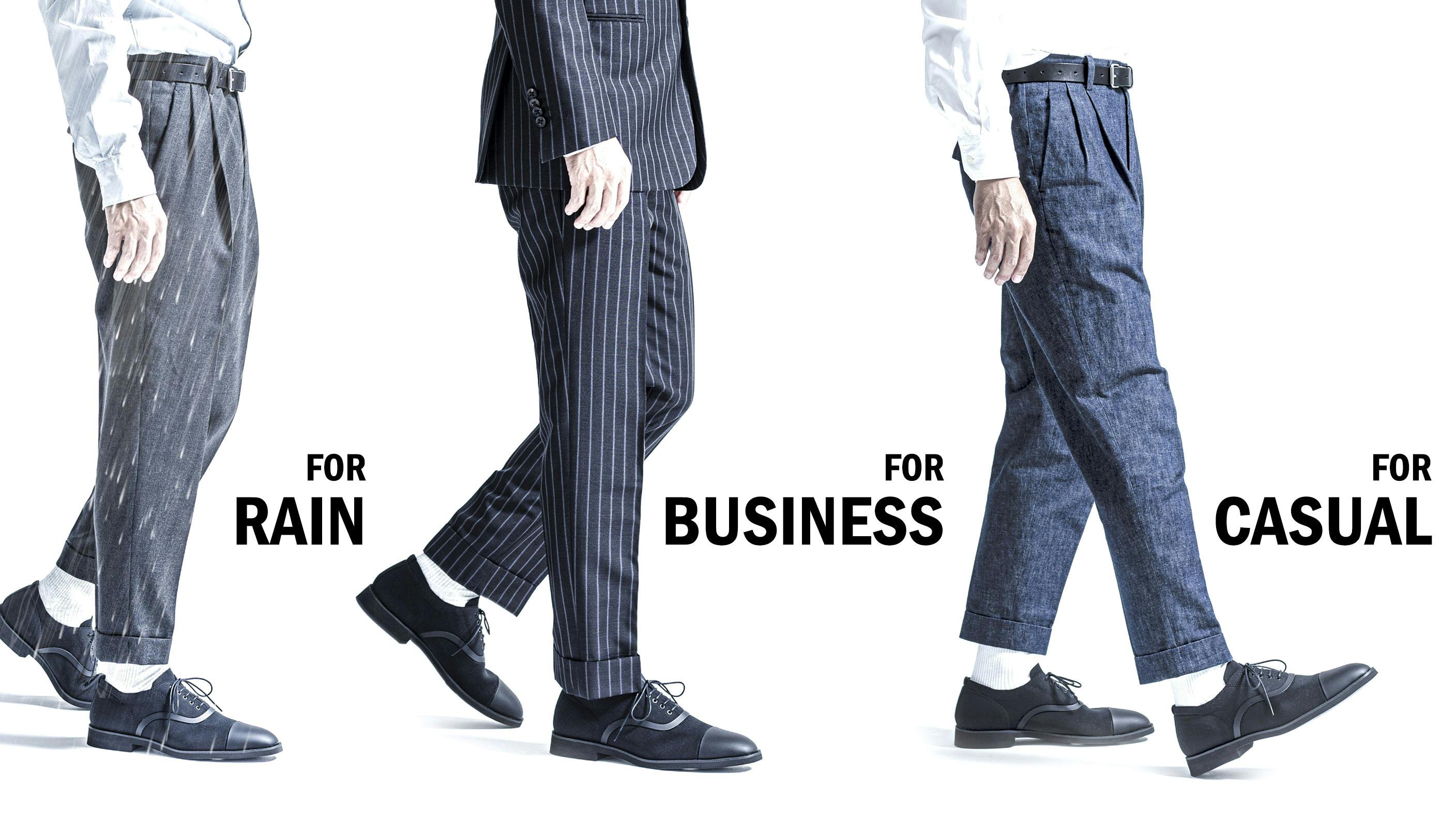 ますます多様化する働き方。オフィスワークもあれば、在宅ワークもある。だからこそ、今までよりももっと、TPOに合わせた靴選びが必要とされます。「+F+(エフ)」はオーセンティックなスーツにも、ジャケパンスタイルにも、そしてカジュアルなスタイルにも対応可能。さらに天候も不問。あらゆるシーンを想定しています。