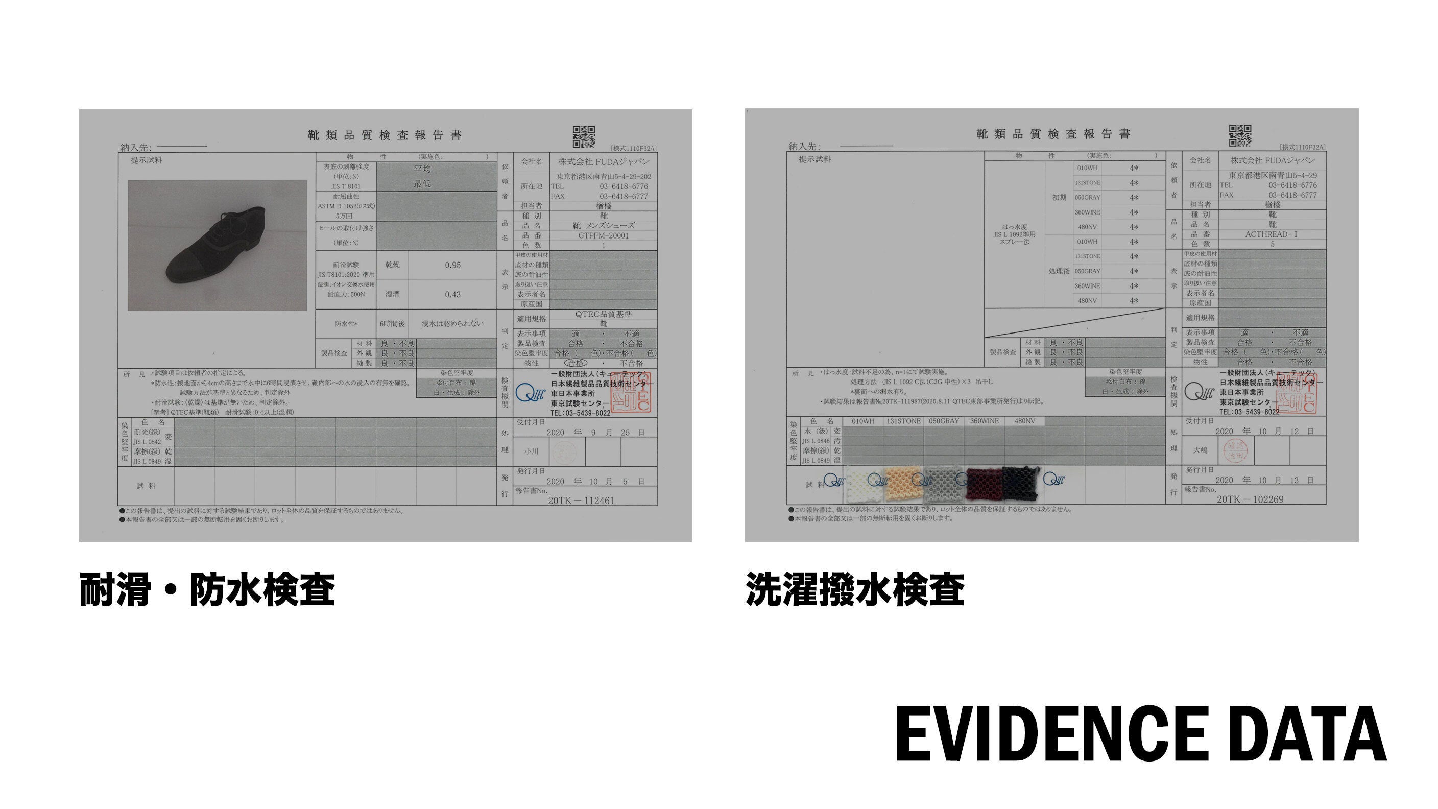 第三者機関による、耐滑・防水検査、洗濯撥水検査を高水準でクリア。