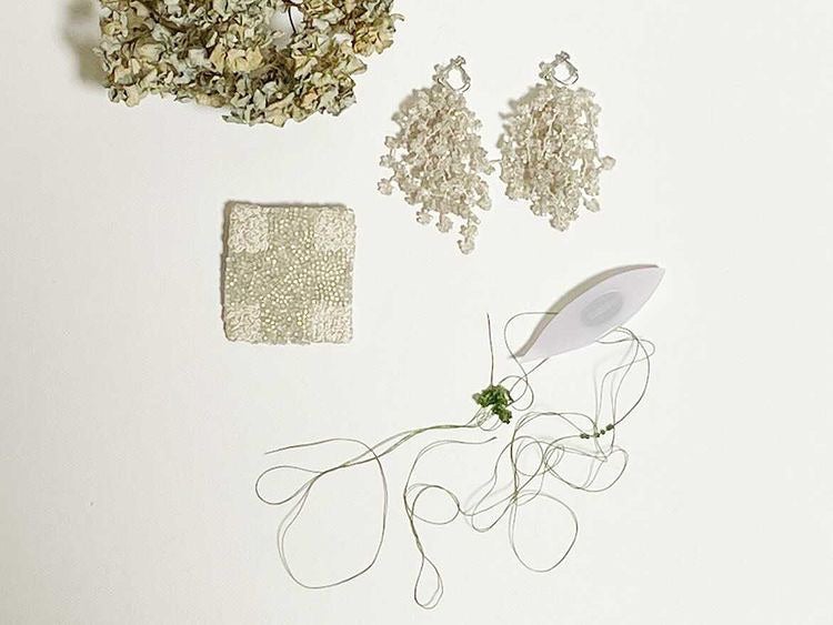 絹糸や綿の糸で、タティングレースやビーズ刺繍などの手仕事のアクセサリーを制作されています。