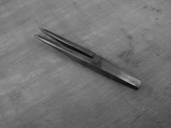 「現代の金唐革プロジェクト」では、伝統的な皮革工芸技術についての調査研究もすすめています。写真は「閑清目打(かんせいめうち)」と呼ばれる、皮革を手縫いする時に使う工具。