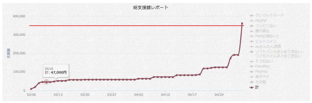 これまでの支援額推移。CEOも驚きの、ラストからのすさまじい上昇率。