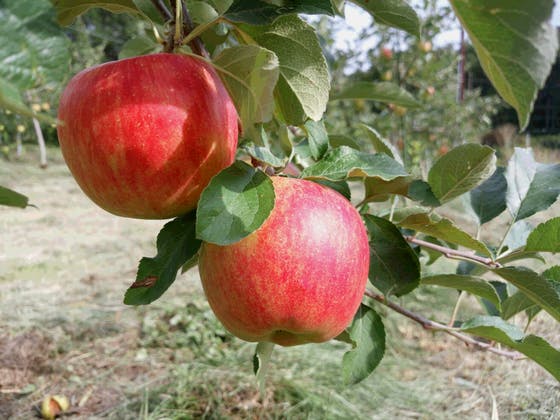 今年5月31日の雹で被害に遭い傷になったリンゴの実。