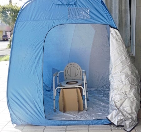 また、すぐにお手洗いに行けるよう、目隠し用のテントと、その中に簡易トイレを設置して、安心できる空間をご提供いたします。