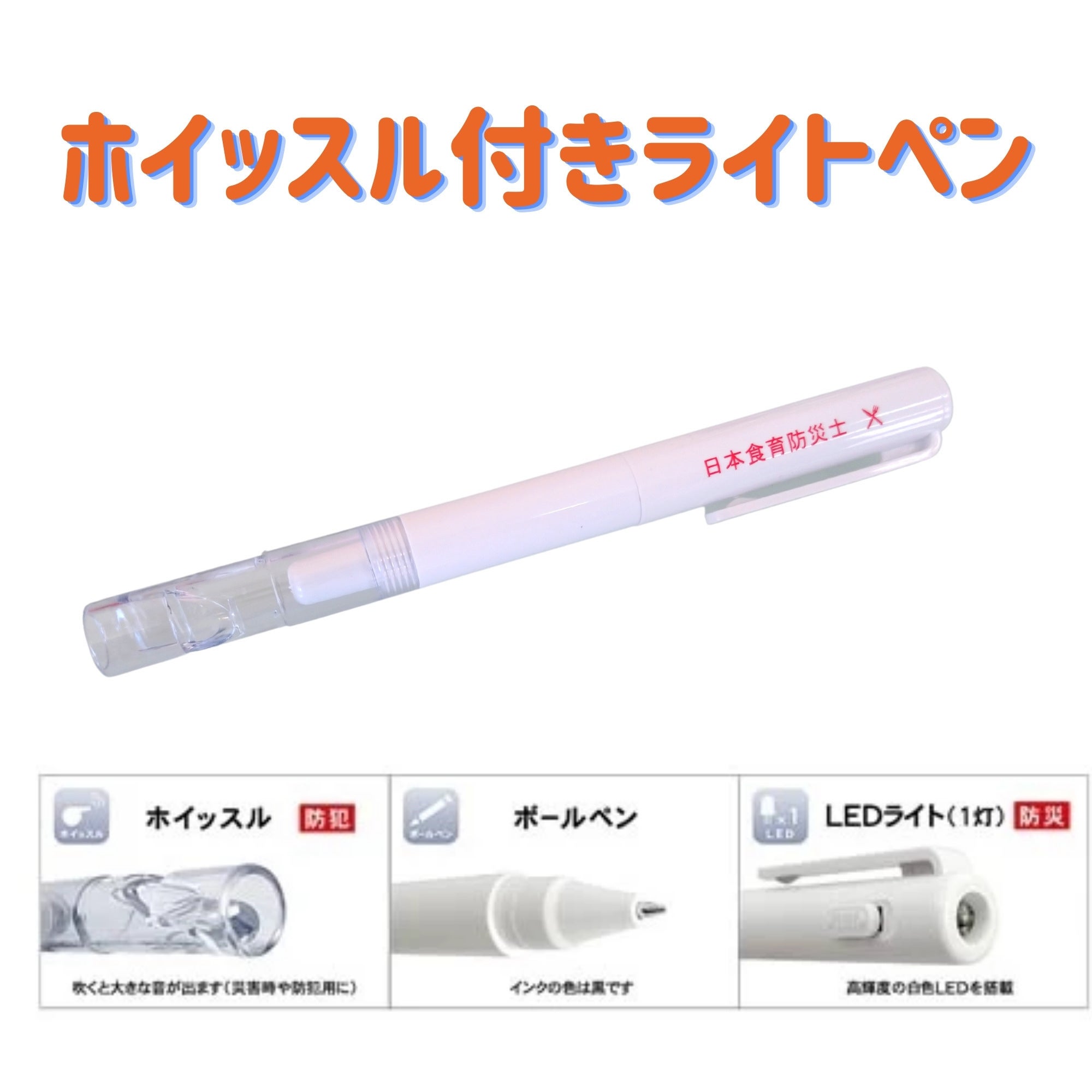 少人数制で安心!普段聞けない食の悩みを聞いてみましょう!日本食育防災士オリジナルグッズ「ホイッスル付きライトボールペン」は、1本で3役機能がついた優れもの!