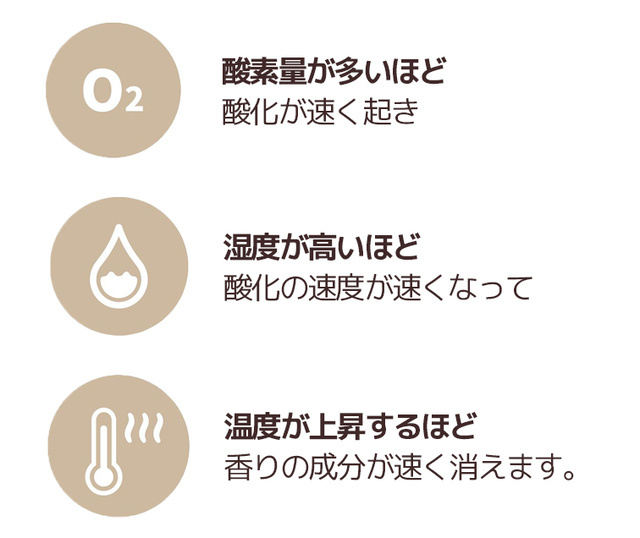 しかし、コーヒーは焙煎直後からコーヒーの香りと味を乱す酸化が始まります。