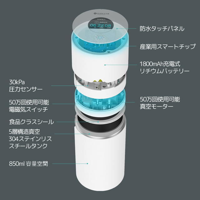 蓋の真空モーターと圧力センサーを介してステンレス鋼タンクの内部の空気を外に排出します。