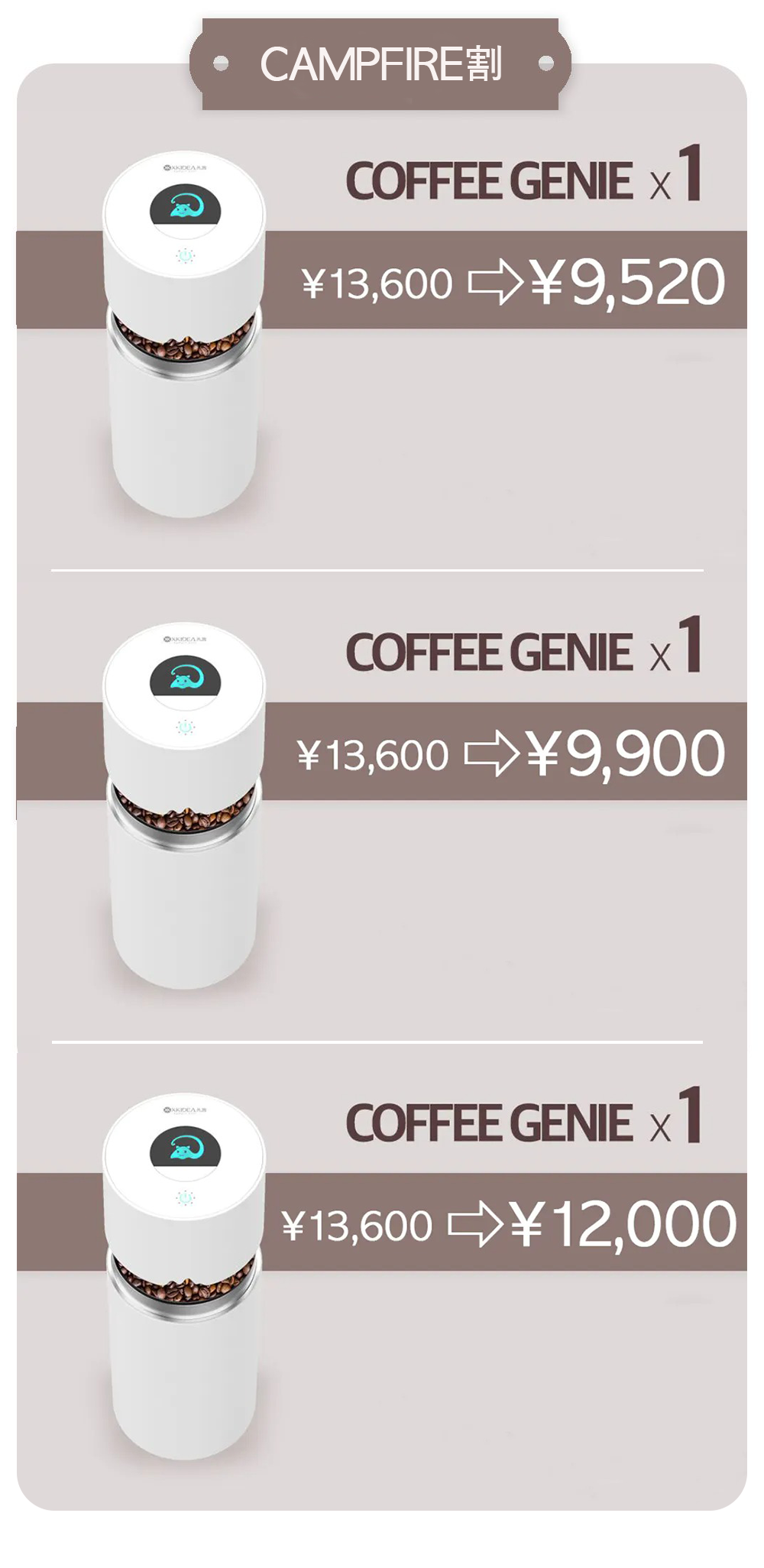 2021/07/02 12:13サポーターの皆様、お世話になっております。この度たくさんのご支援いただきましたコーヒージニですが、予定通り当月の納品スケジュールで進めております。現状メーカーの報告ですと7月の中頃から順次、月内を目途に皆様のお手元にお届けする予定でまた配送日近くなりましたら報告申し上げます。(一部地方は1−2日くらい遅れる可能性があります)長期のご不在でお受け取りが無かった場合倉庫に返却になり再配達料がお客様のご負担となってしまいますので確実にお受け取りいただきますようご準備のほどよろしくお願いいたします。以上報告申し上げます。商品到着まで引き続きよろしくお願いいたします。 もっと見る
