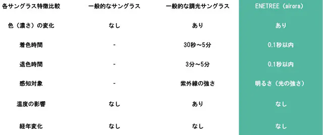 サングラスのレンズの濃淡をその時の環境に合わせて自動で切り替えてくれる「電子フレキシブル液晶調光フィルム」を搭載した【ENETREE(エネツリー)】のアイウェアたち。その最新モデルとなる【airora wellington】が登場!“0.1秒、瞬間自動調光機能”はそのままに、よりライフスタイルに馴染むデザインとなりました。