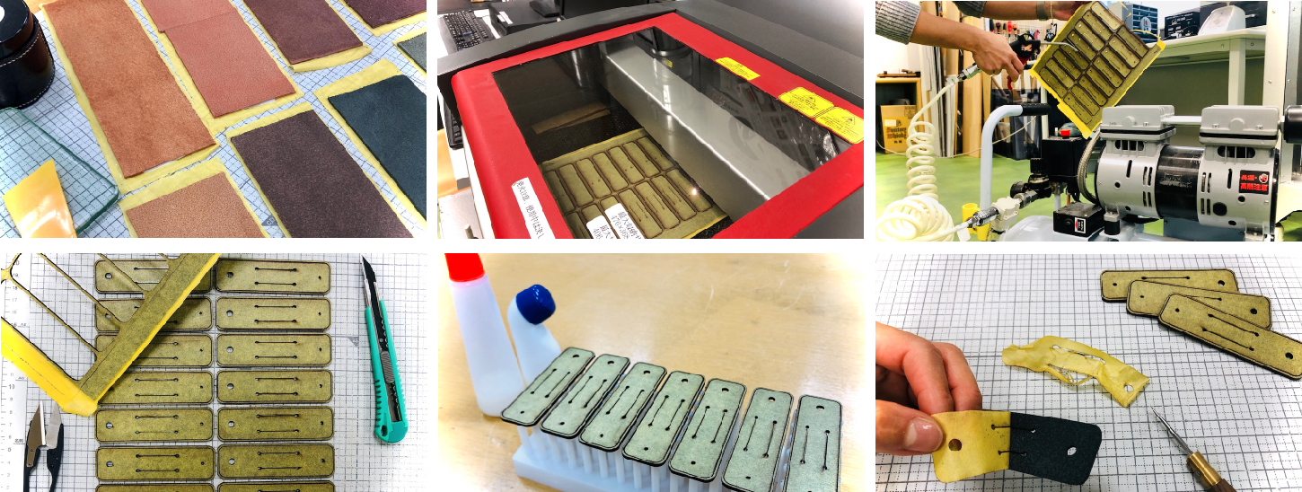 通常、革の切り出しには、スエーデン鋼などで作られた「抜型」が使われていて、私も創業50年の抜型職人さんへよく抜型を依頼をしますが、今回は依頼したスリットを作るのが「難しいんだよね〜」と断られてしまいました。