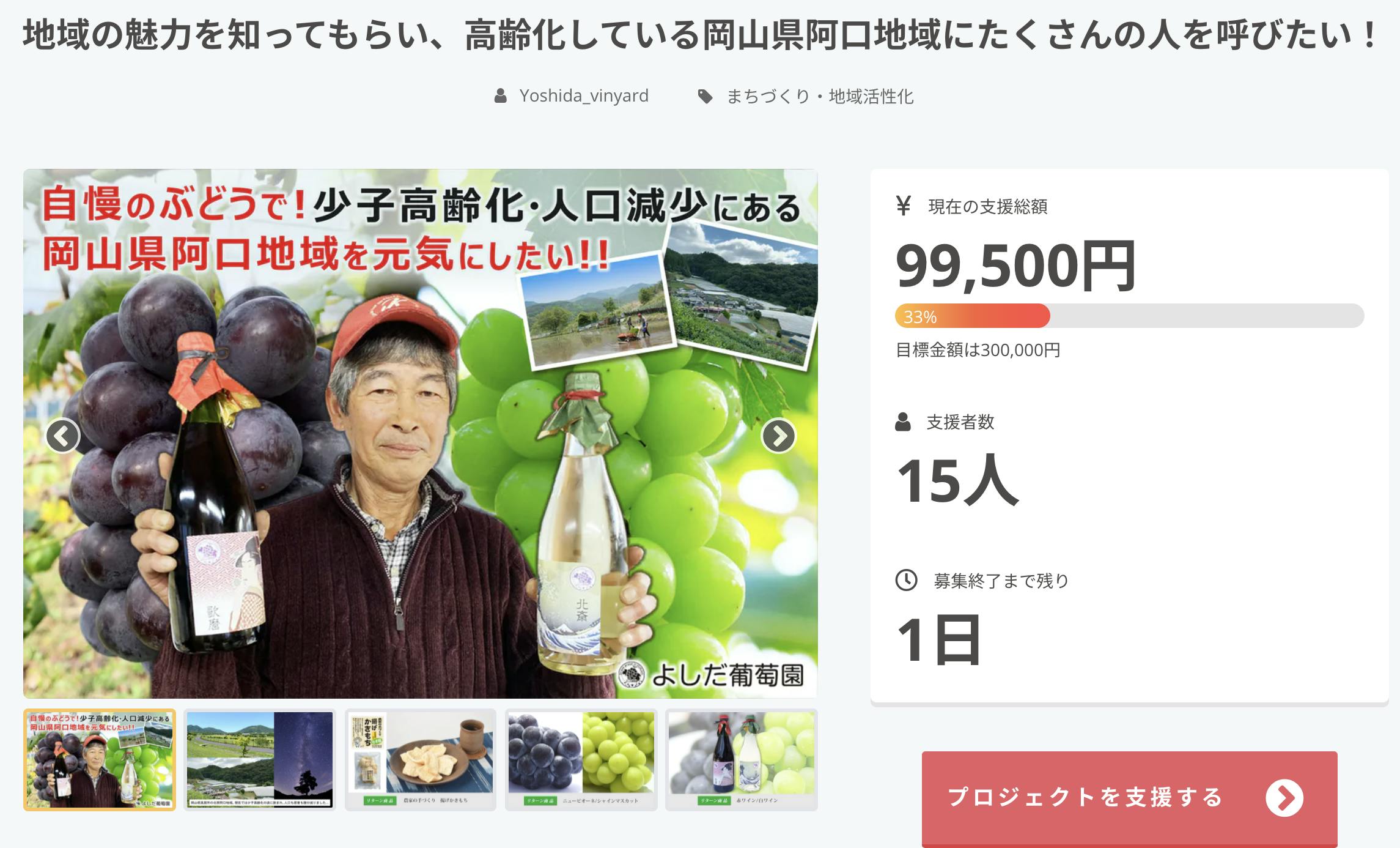 残り1日となりましたが、最後までにご支援、ご協力をお願いいたします。