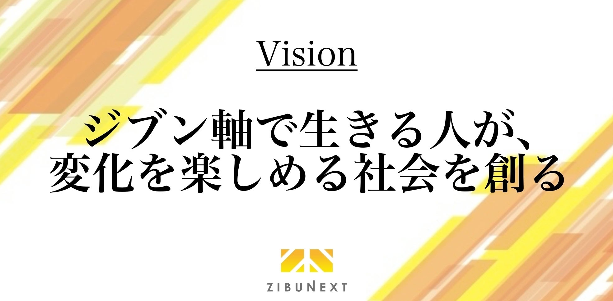 ジブネクストのビジョンは、「ジブン軸で生きる人が、変化を楽しめる社会を創る」です。